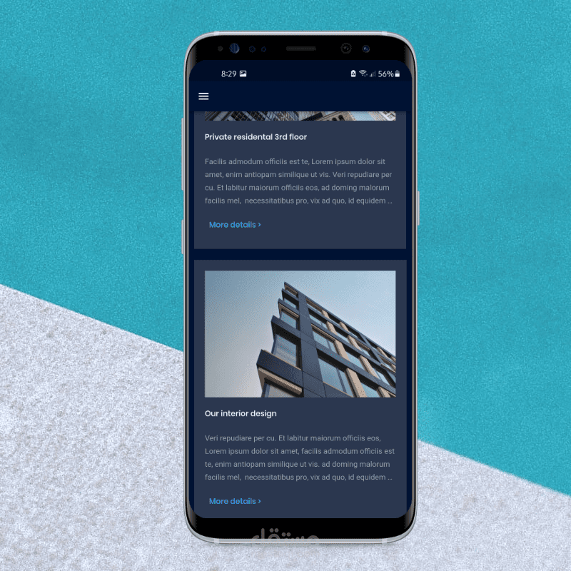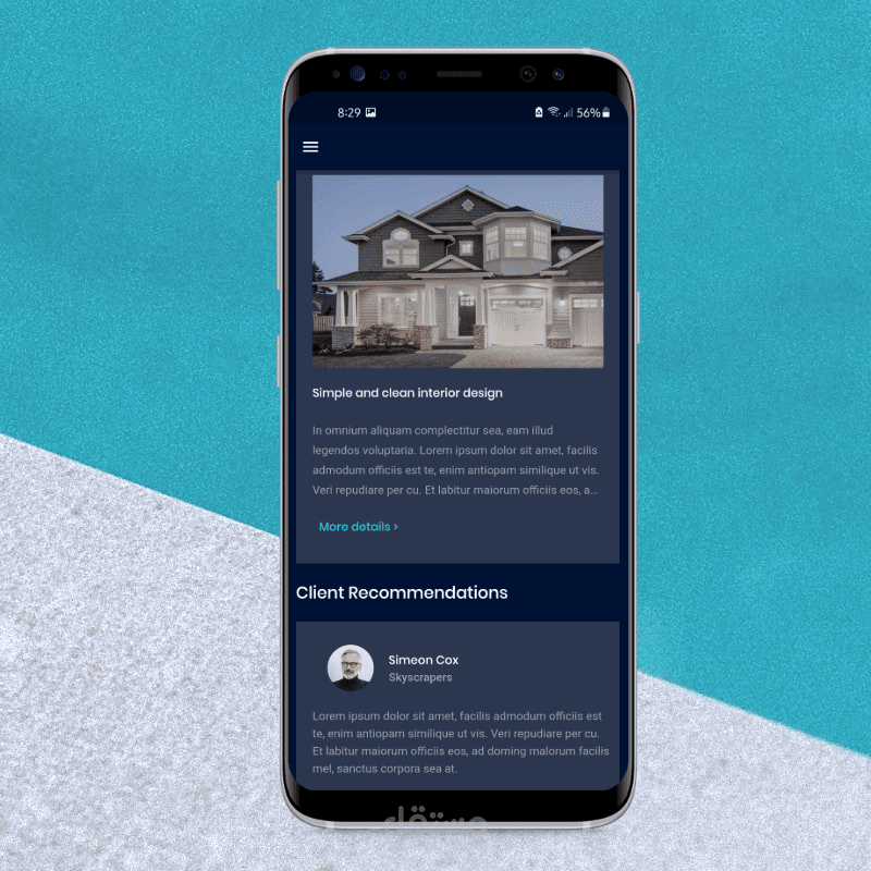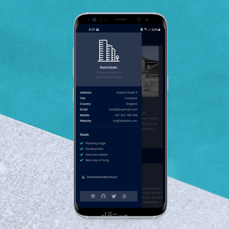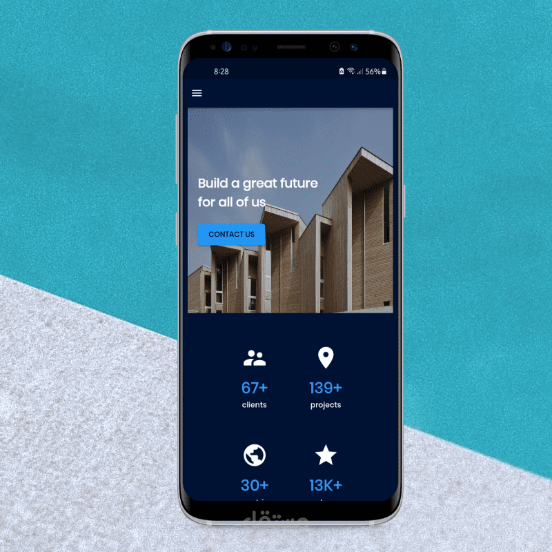 يستخدم هذا التطبيق كملف تعريف لشركة عقارات لتقديم المباني في مظهر رائع والسماح للعملاء بمشاركة تجاربهم مع هذه الشركة.