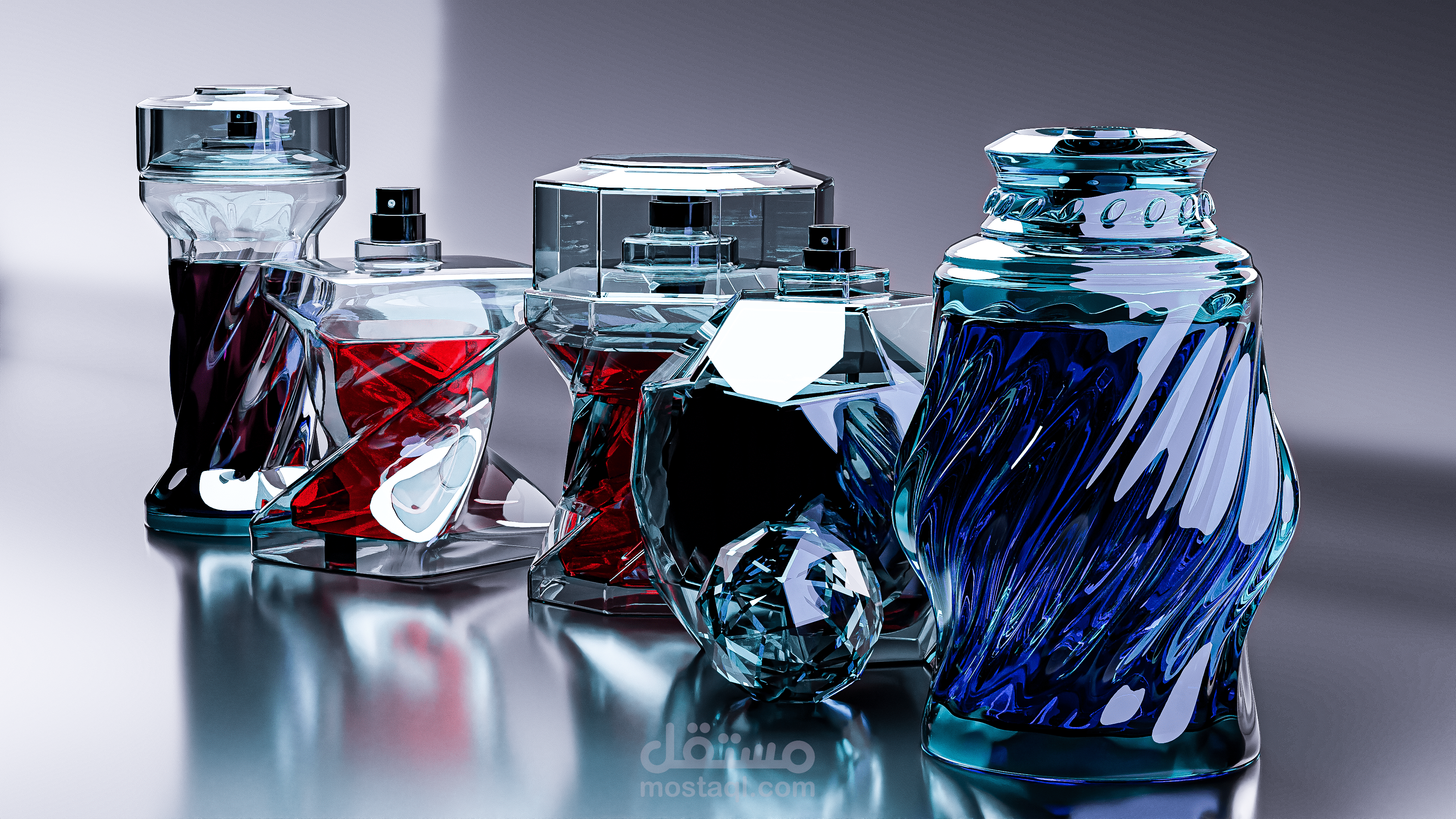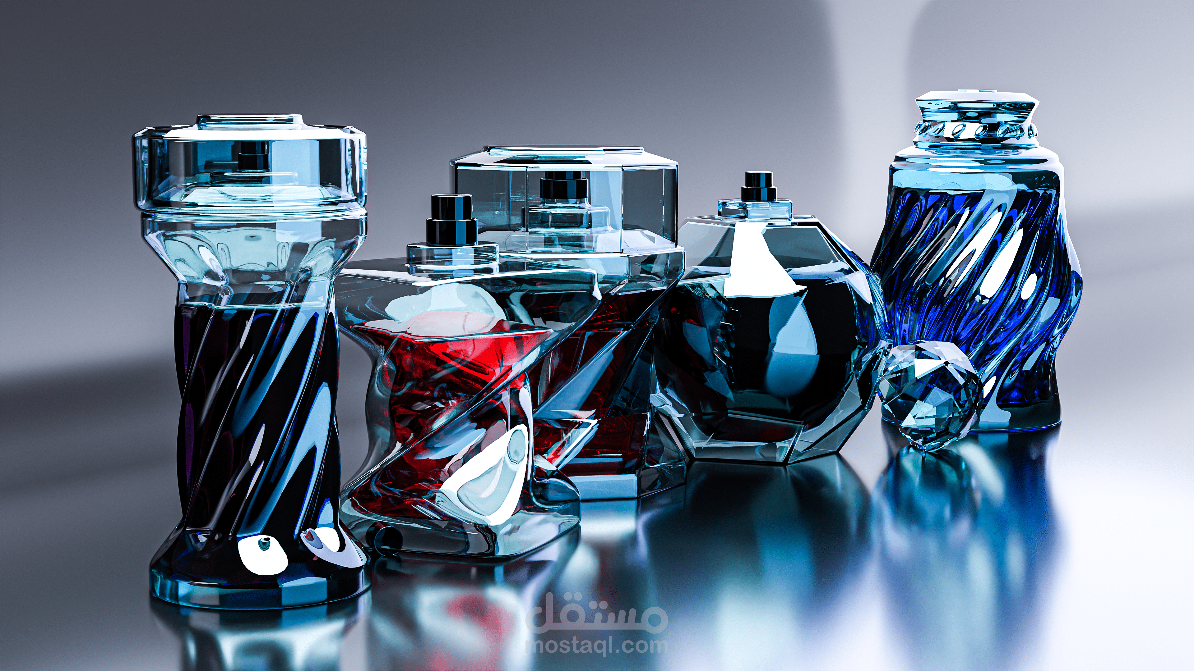 تصميم زجاجات عطر 3d وعرضها بشكل احترافي