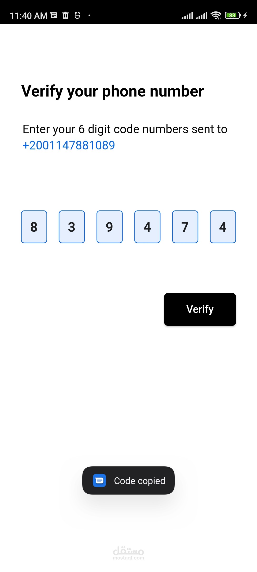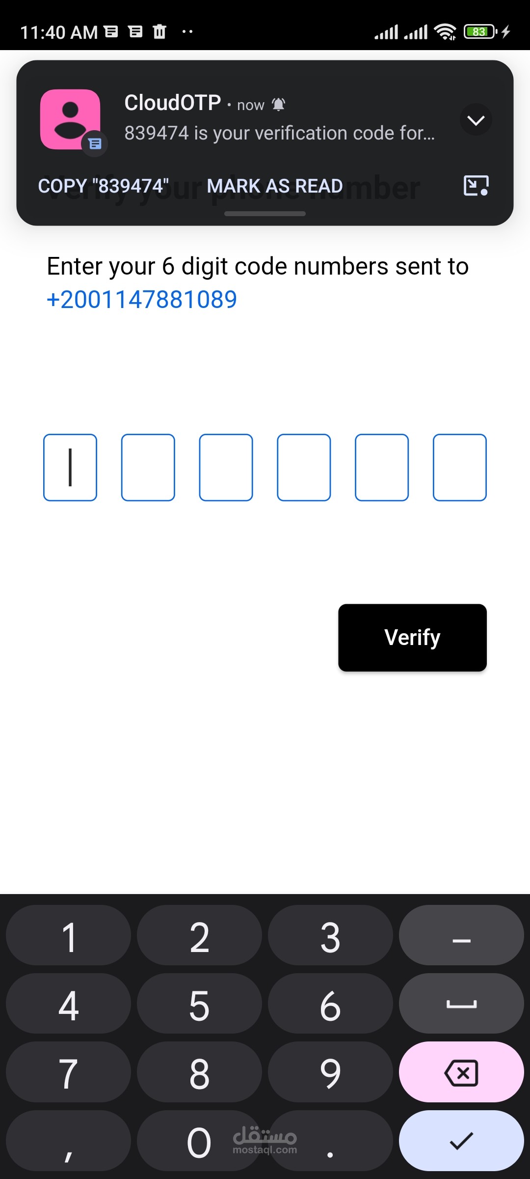 من بعد ذلك يتم بعت otp للهاتف للتأكد من الهوية ثم بعد ذلك يدخل otp لتأكد الهوية بعد ذلك يدخل علي الصفحة الرئيسية