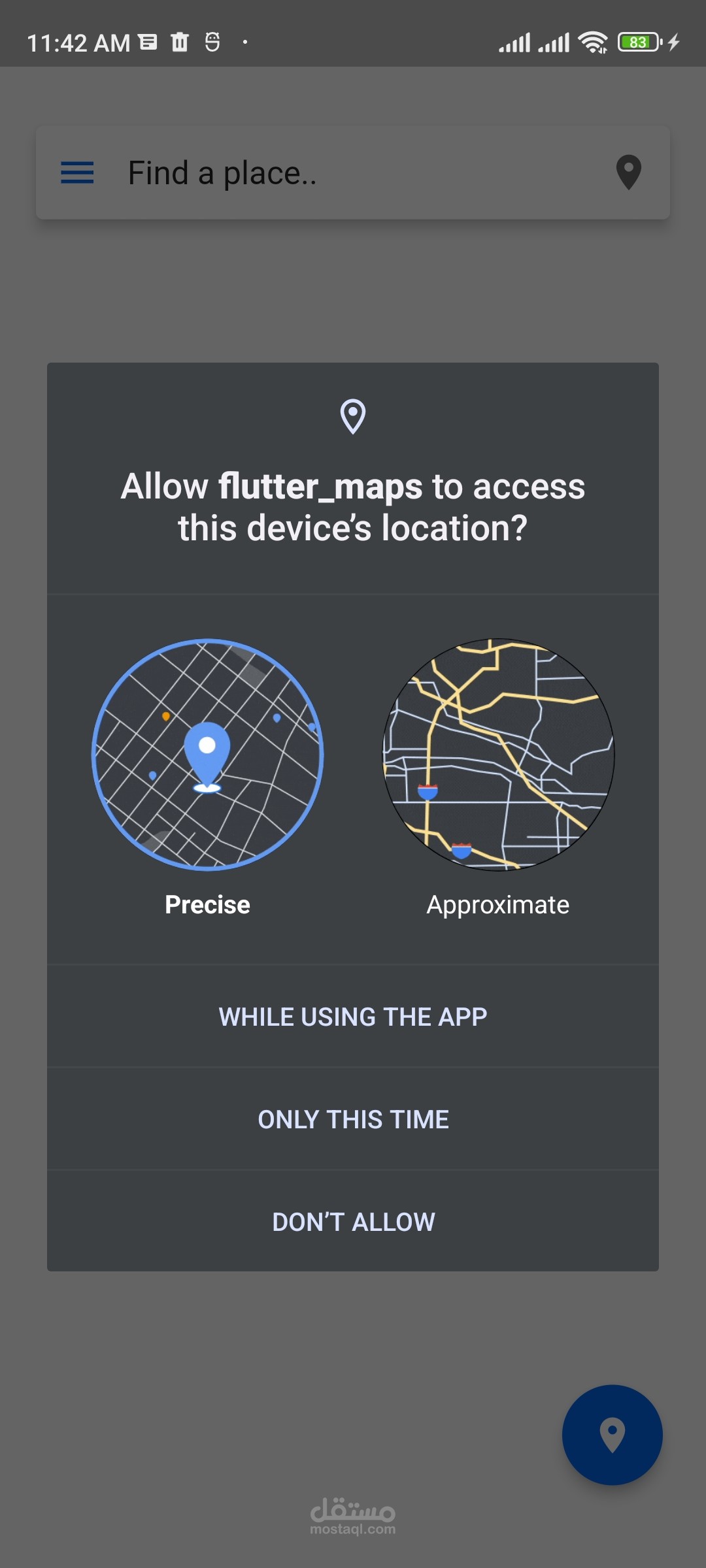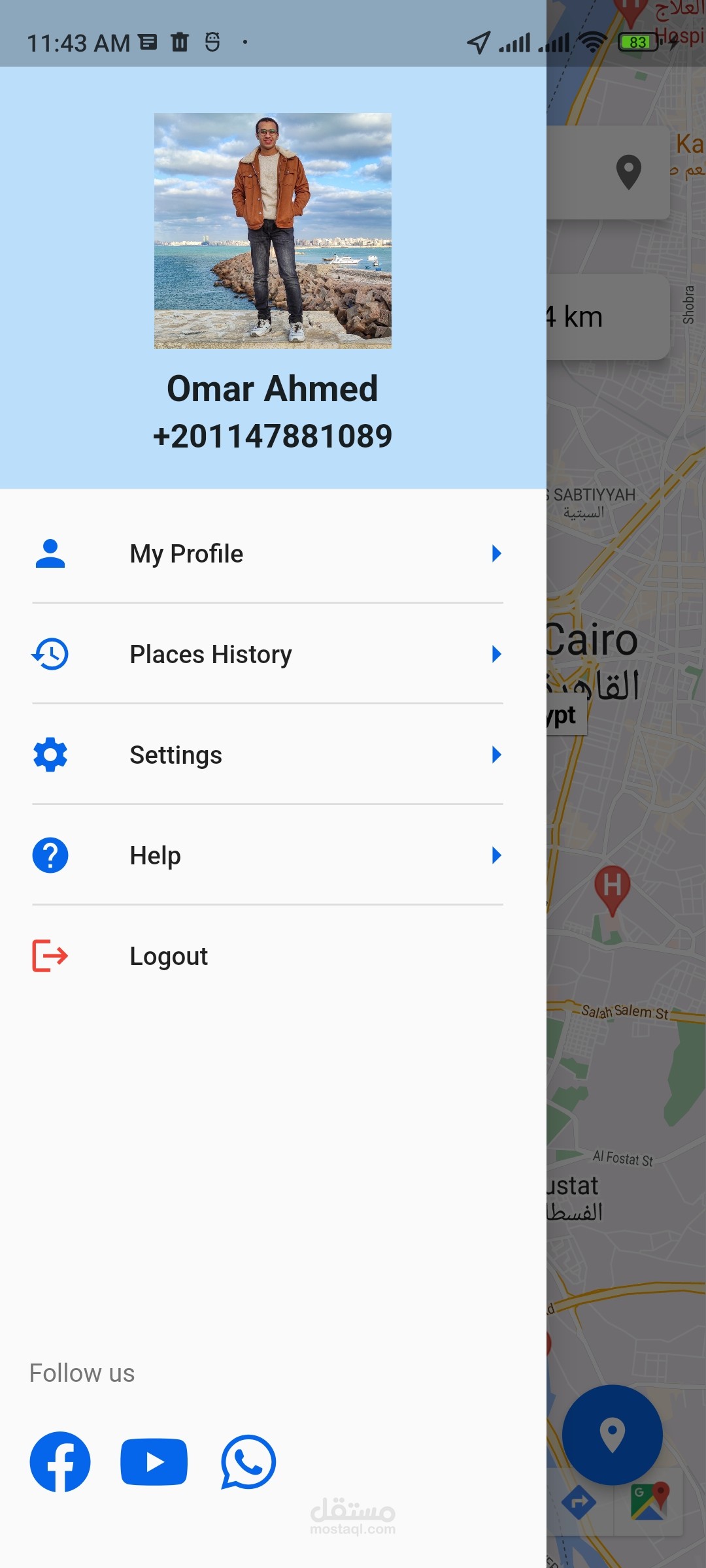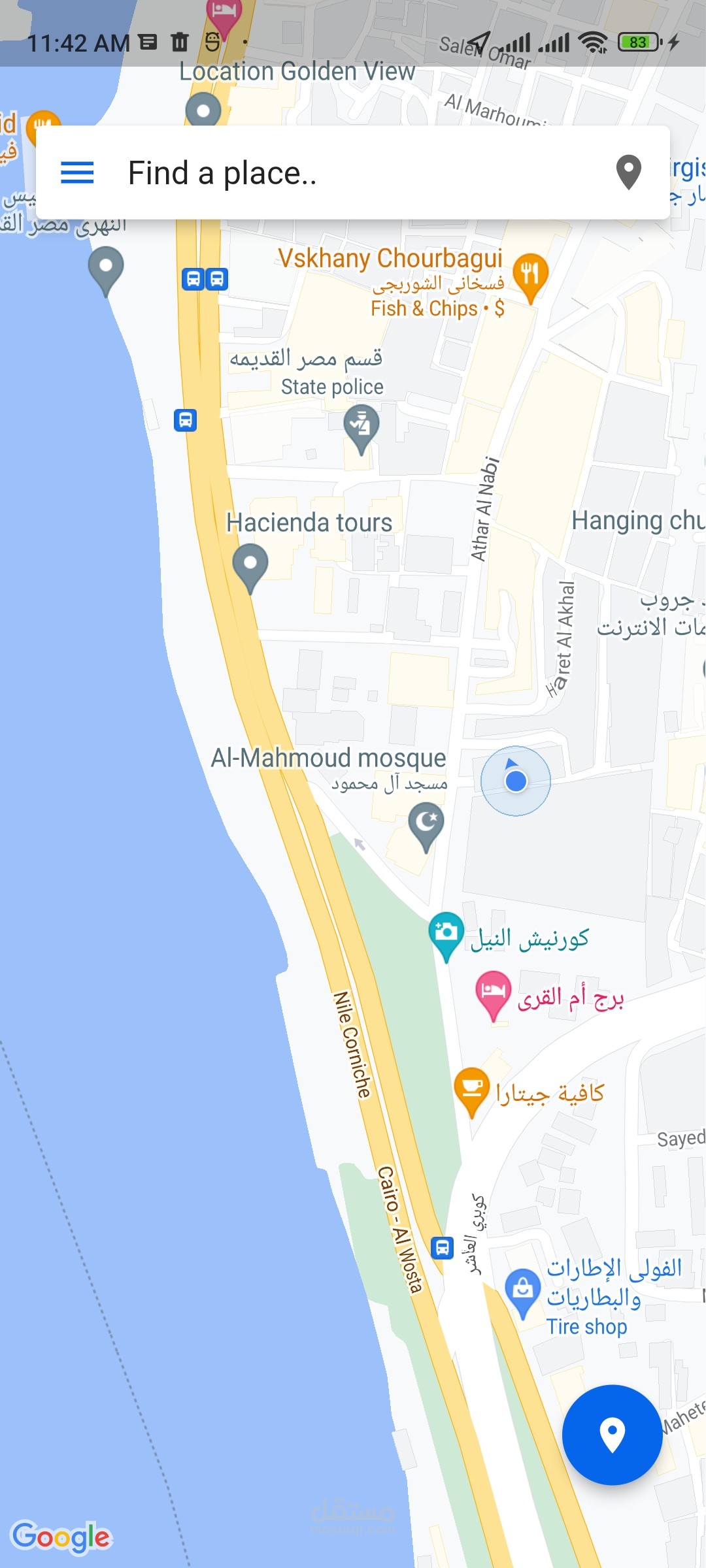 ويوجد في الصفحة الرئيسية خرائط جوجل ويتم تحديد موقعك من بعد اخذ الاذن من الهاتف ويستطيع المستخدم ان يبحث