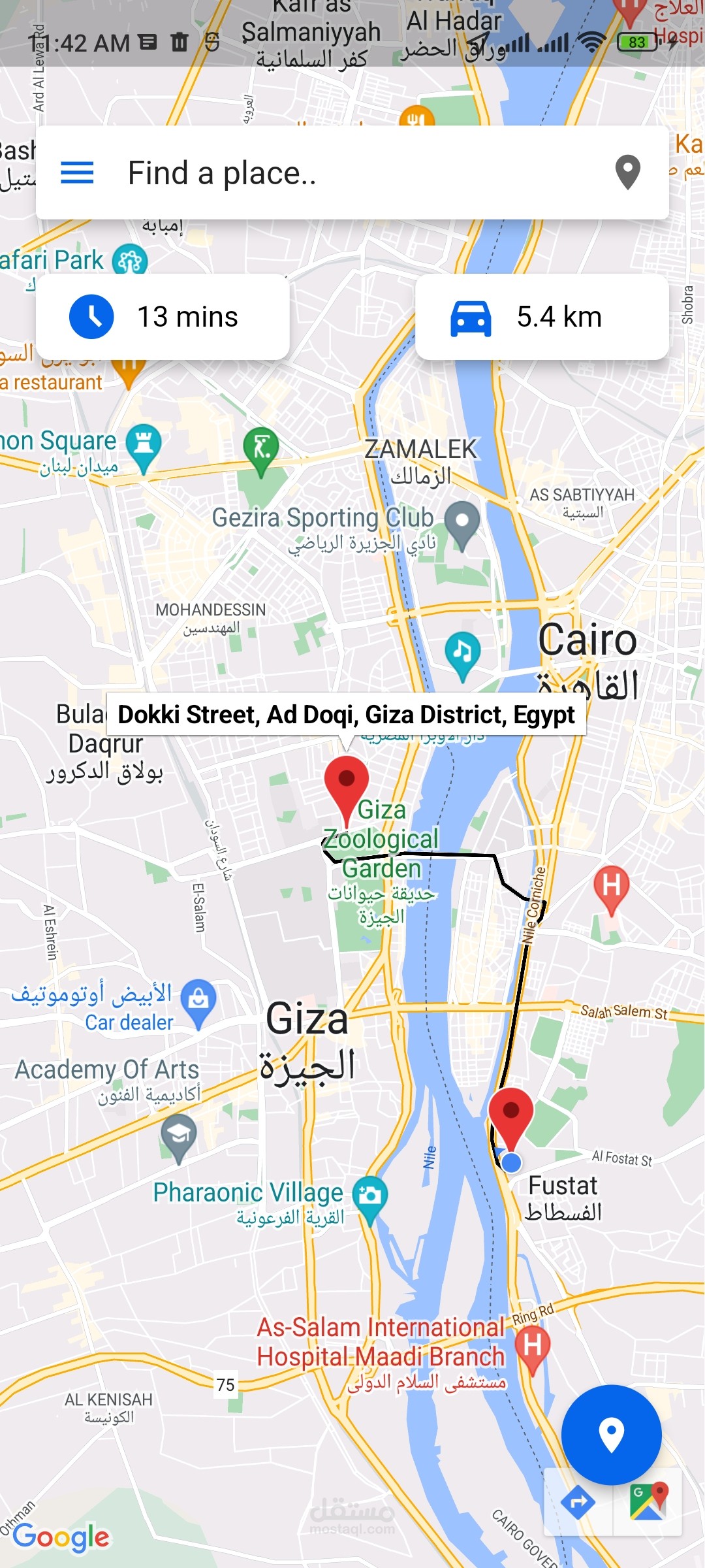 يقوم التطبيق بعمل marker علي المكان ومن ثم يقوم بحسابة الوقت والمسافة بين موقع المستخدم والمكان ورسم الطريق لكي يذهب الي هناك