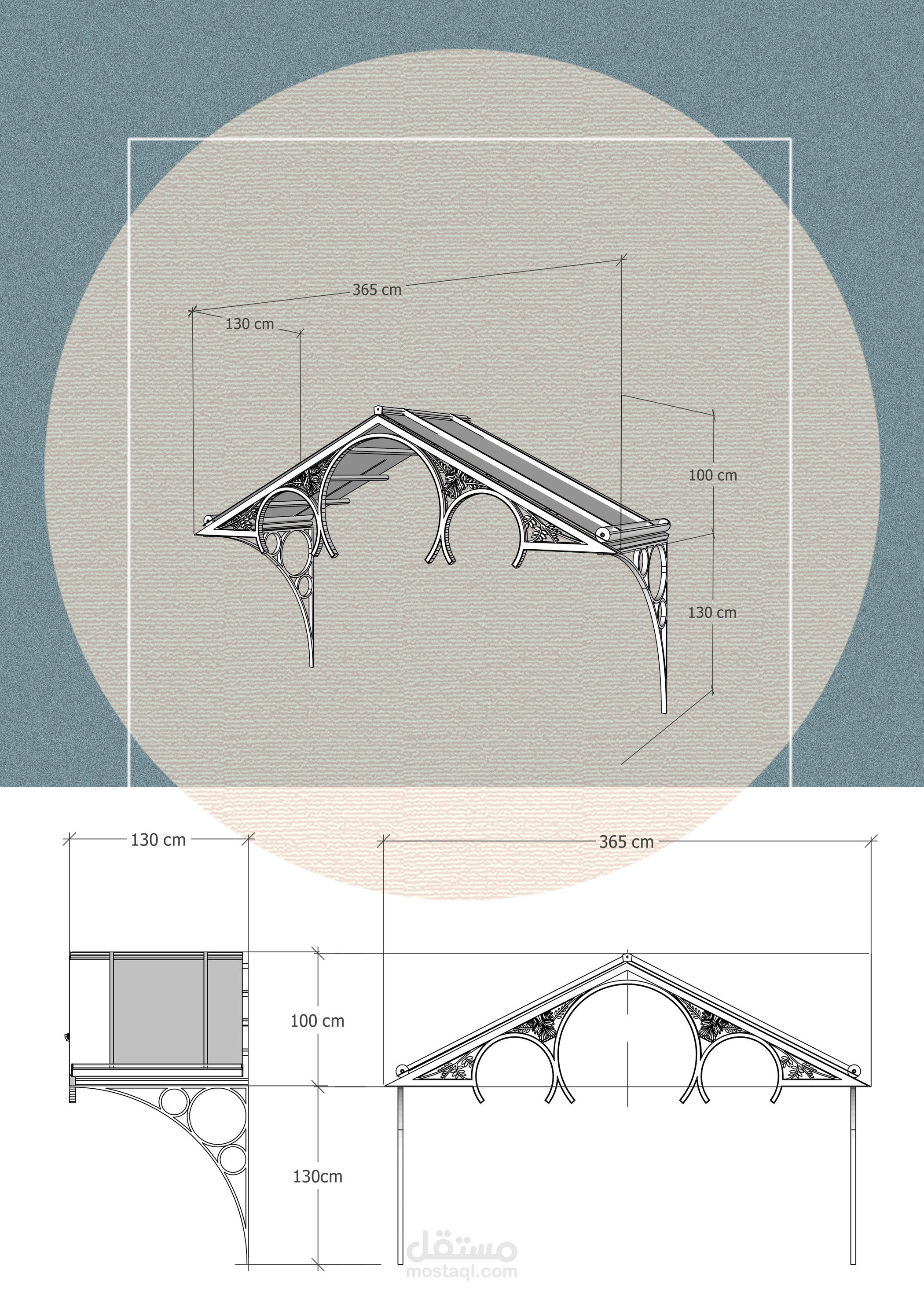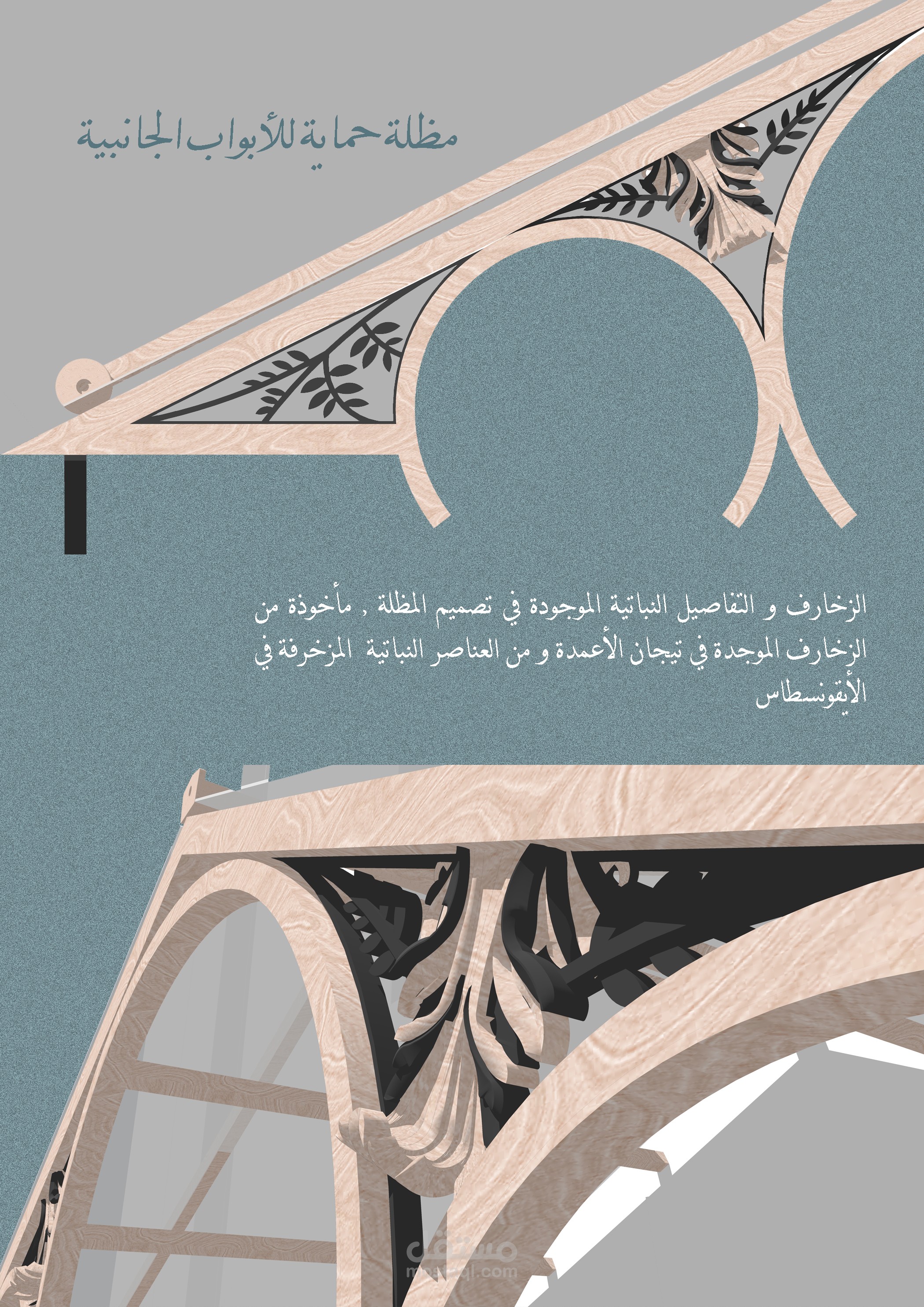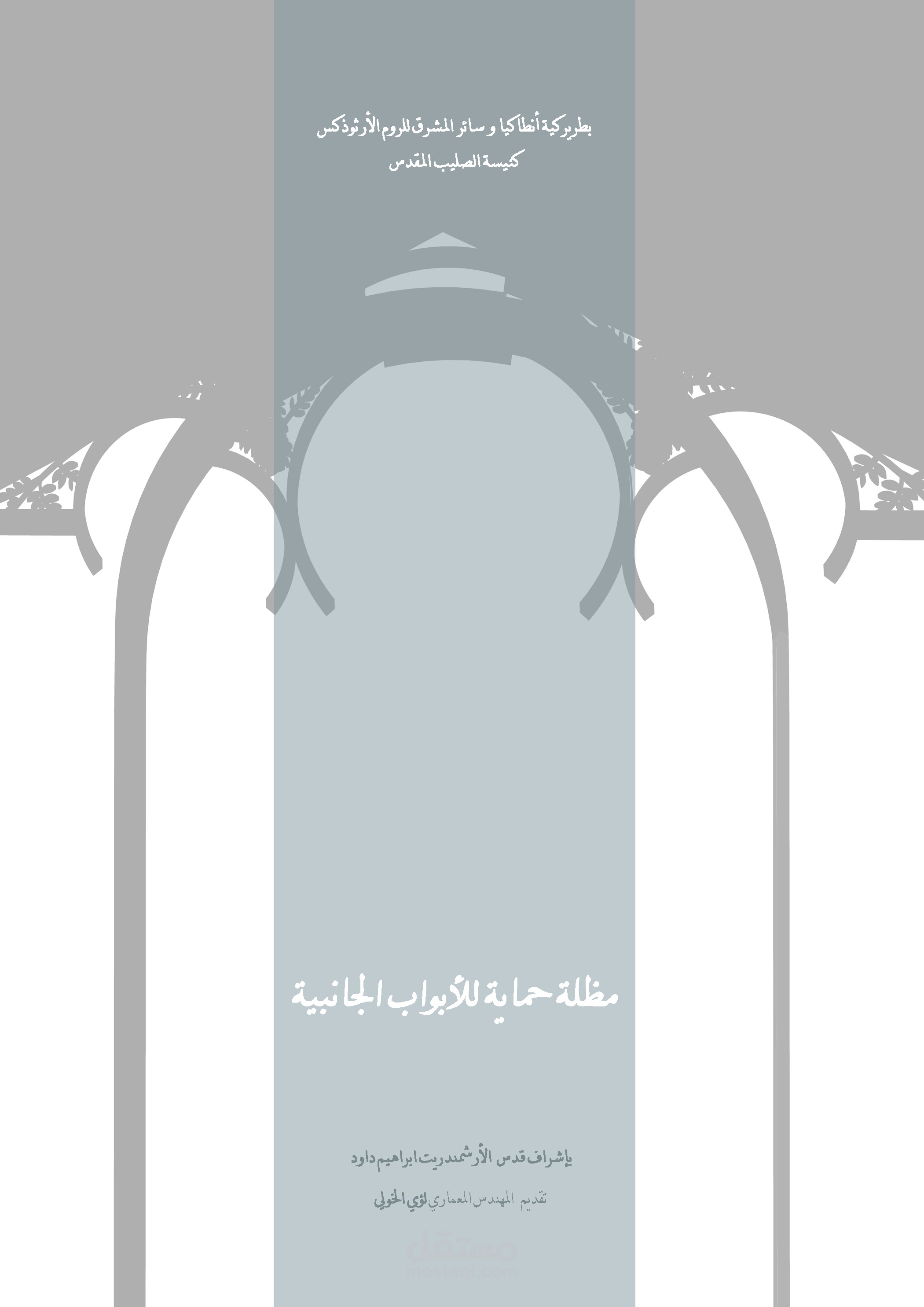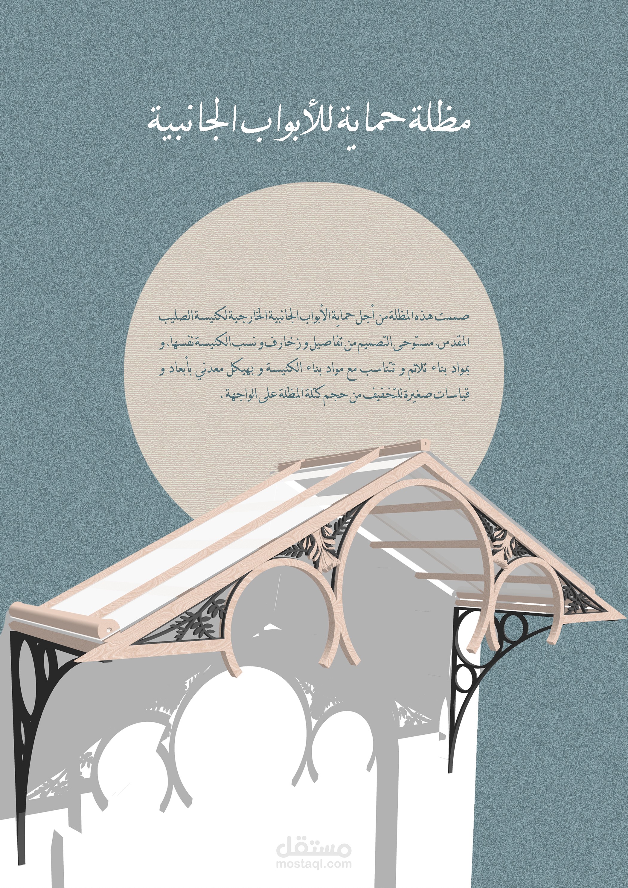 صممت هذه المظلة من أجل حماية الأبواب الجانبية الخارجية لكنيسة الصليب المقدس, مستوحى التصميم من تفاصيل و زخارف و نسب الكنيسة نفسها, و بمواد بناء تلائم و تتناسب مع مواد بناء الكنيسة و بهيكل معدني بأبعاد و قياسات صغيرة للتخفيف من حجم كتلة المظلة على الواجهة.