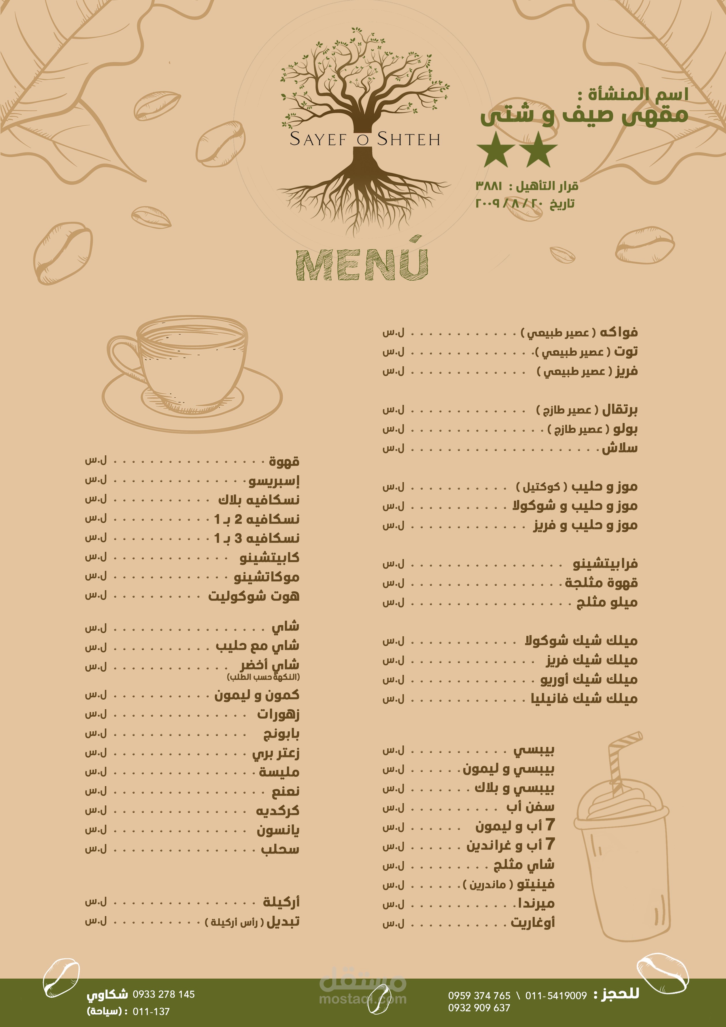 صُممت هذه القائمة (Menu) من روح المكان المتواجد في حيّ قديم في دمشق القديمة..