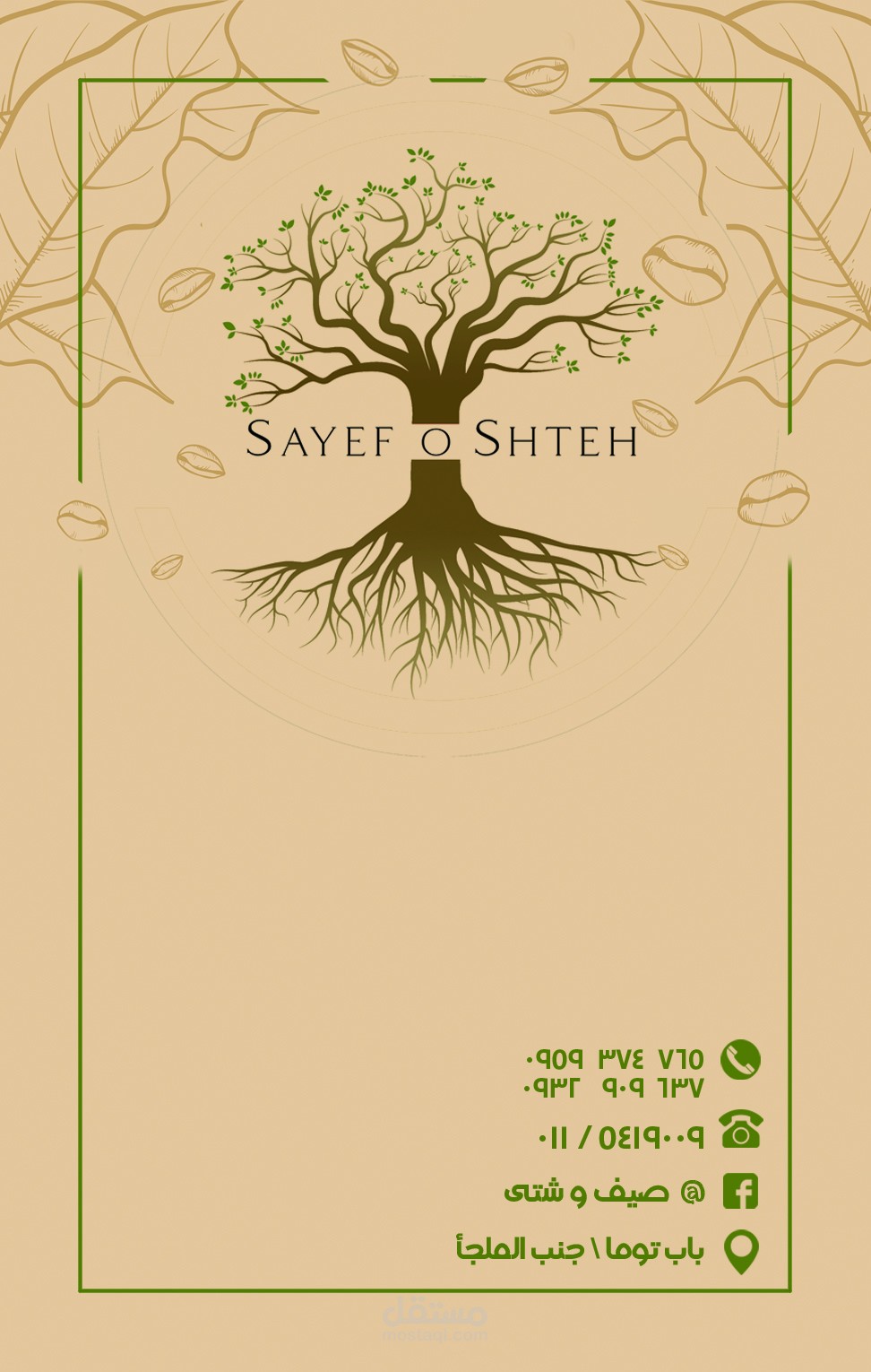 صُممت باللغة الانكليزية و العربية, كما و تم تصميم كروت للمقهى من نفس الروح.