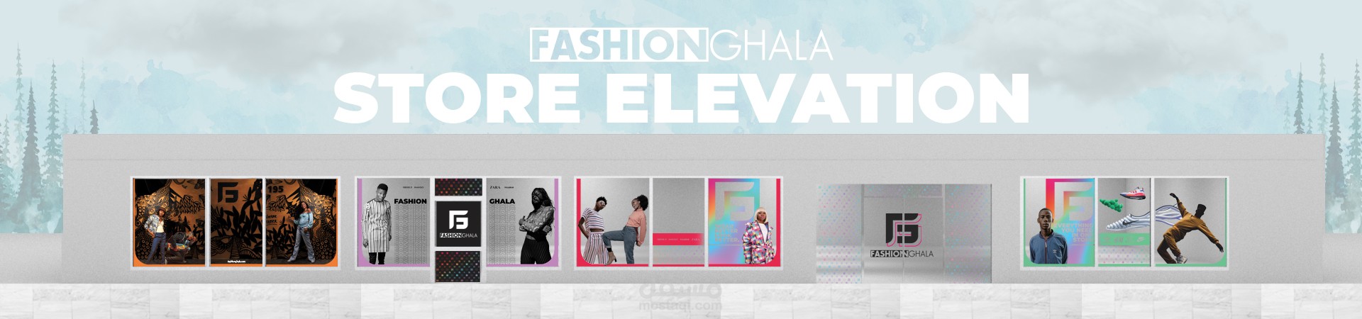 بالإضافة إلى تصميم واجهة المحل التجاري والهوية التجارية والإعلانات الطرقية