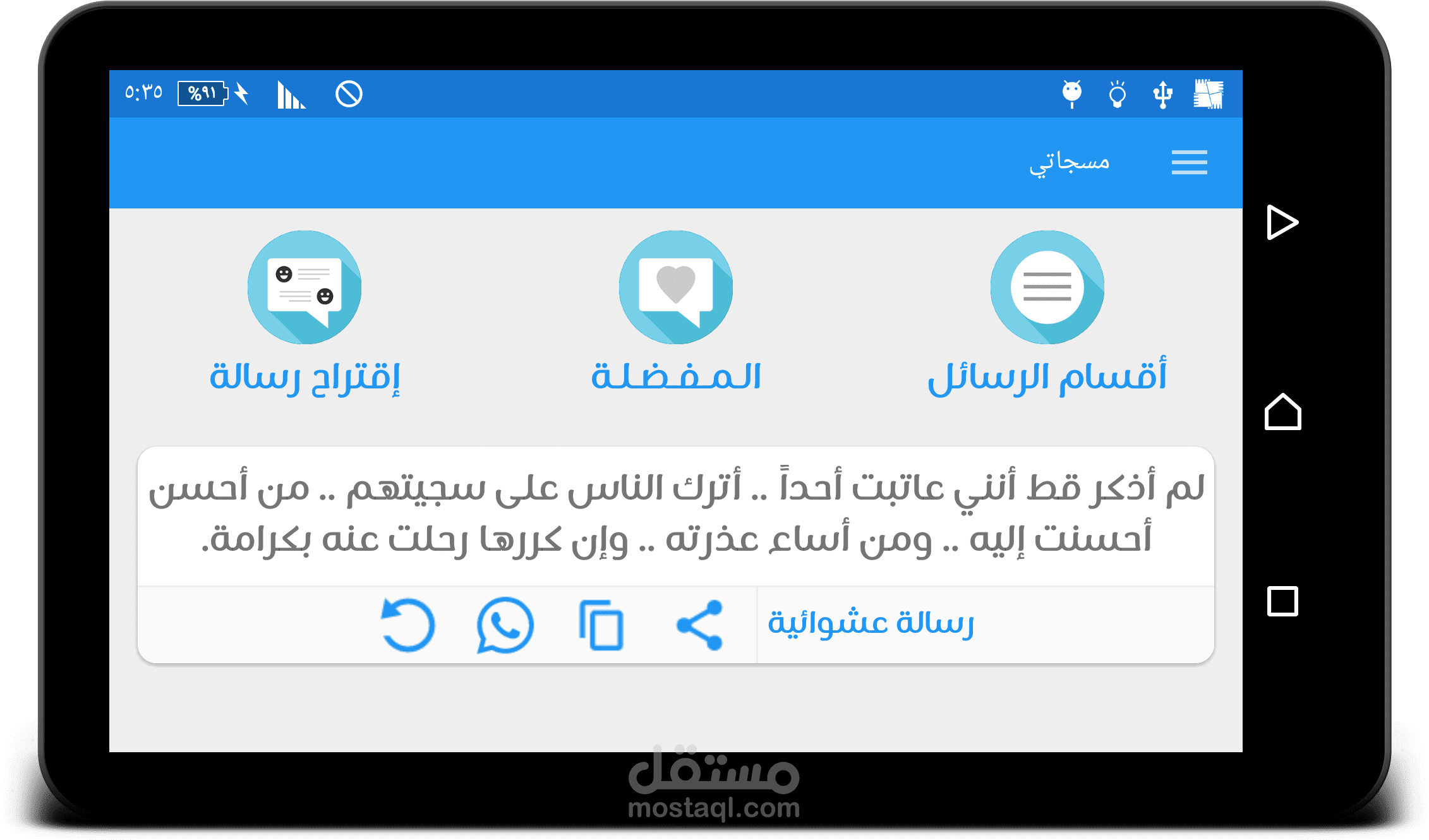تطبيق مشاركة الرسائل ، الحالات مع اصدقائك عبر شبكات التواصل الأجتماعي و التطبيقات الأخرى .