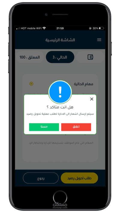 تطبيق خاص بموظفي الشركة حيث يتيح لهم العمل والتواصل مع الادارة ، كل موظف يتبع لمدير قسم يعمل ضمن طاقمه ويكون التطبيق حلقة الوصل وترتيب الاعمال .