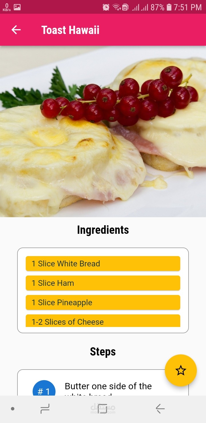 يعرض تفاصيل حول مكونات الطبق المختار وخطوات التحضير.