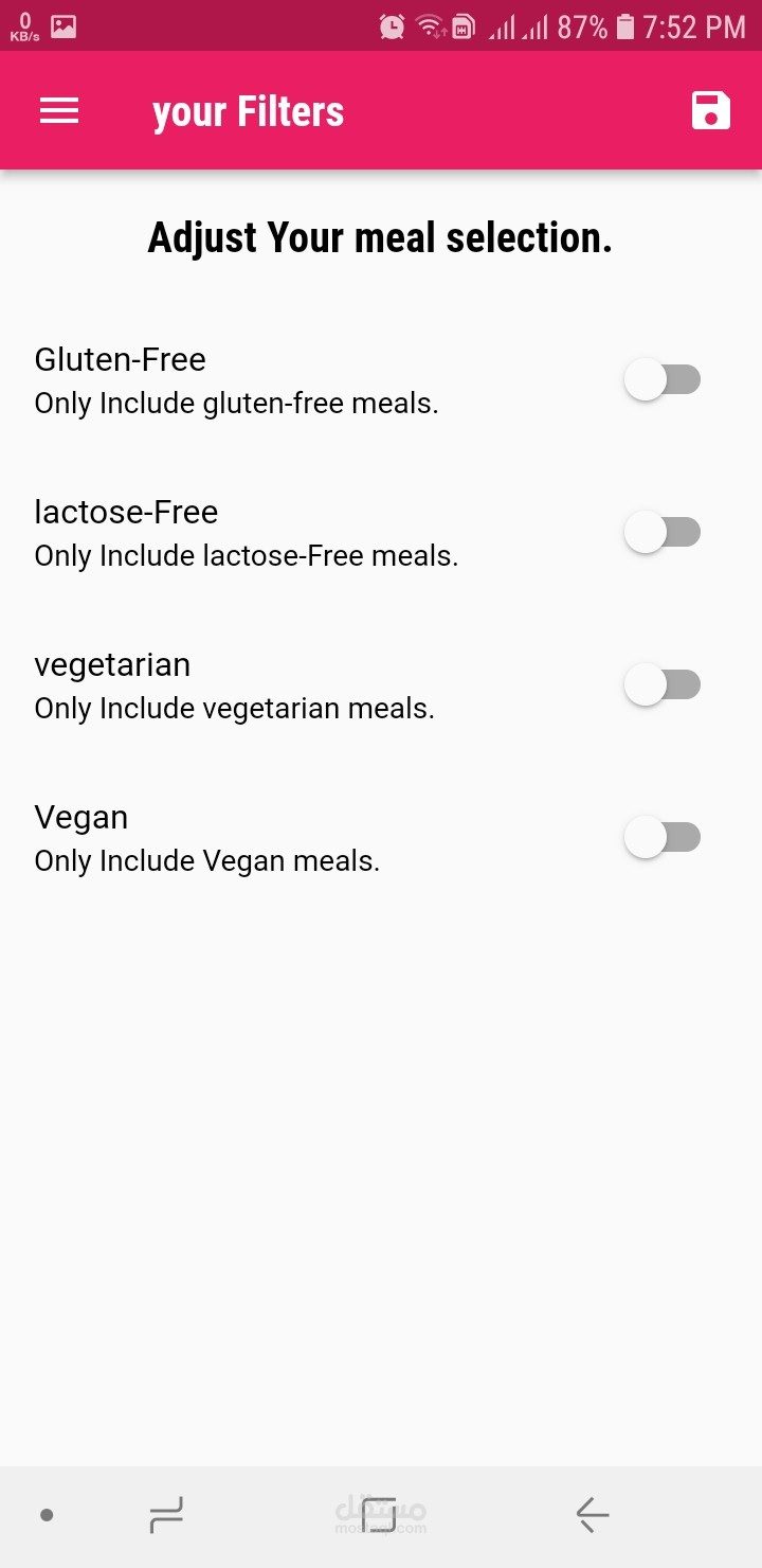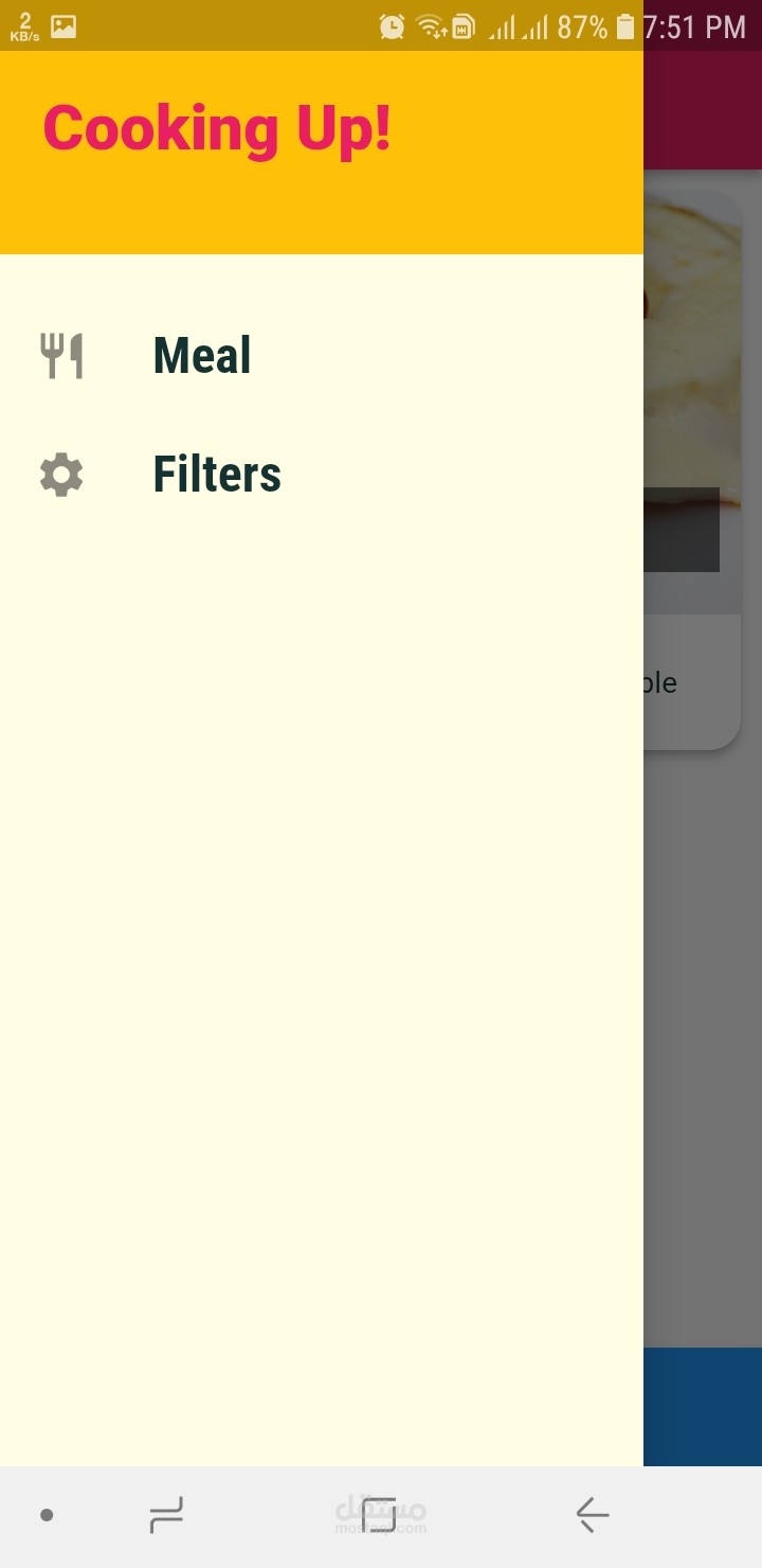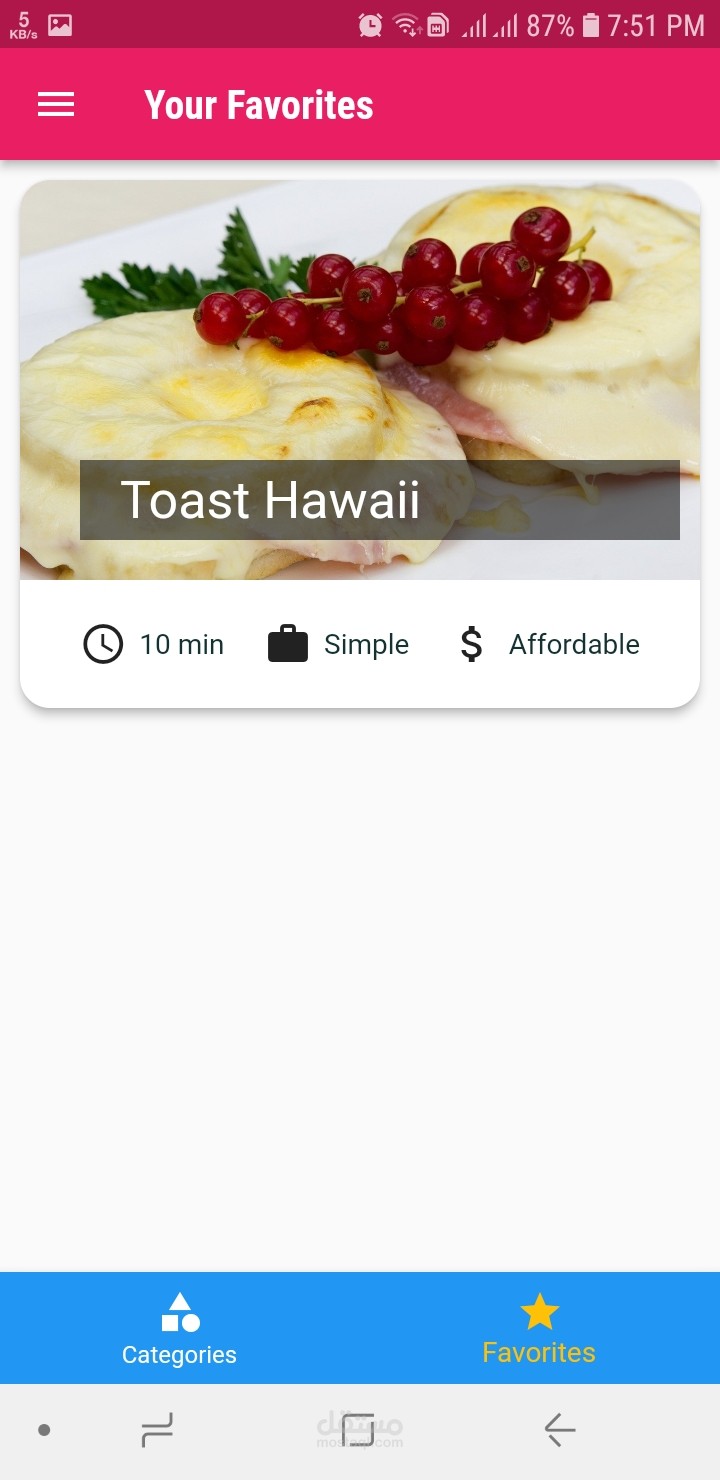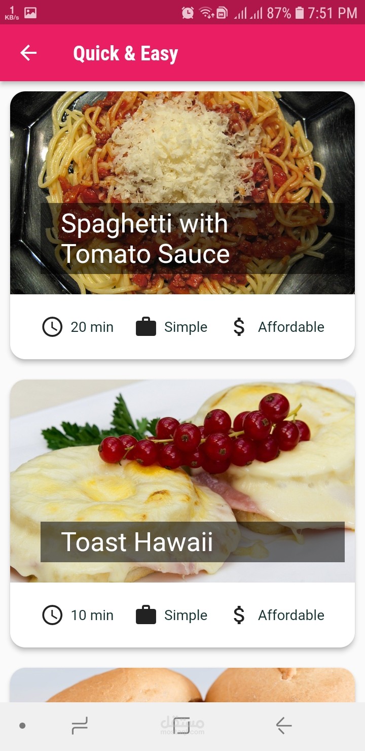 تطبيق اندرويد بسيط يعرض تصنيفات الطعام.