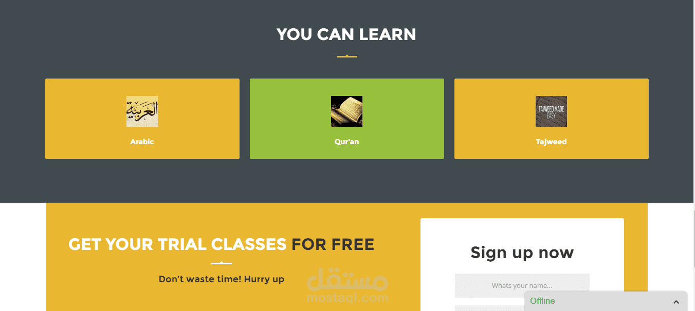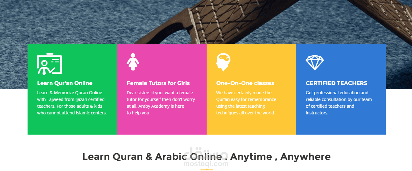 موقع عربي اكاديمي , موقع الكتروني خاص باكاديمية تعليم لغة عربية وقرأن كريم , مبني علي منصة الووردبريس و موقع متكامل مع منصة دفع اوتوماتيكية وايضا خدمة الدعم الفني عن طريق الشات