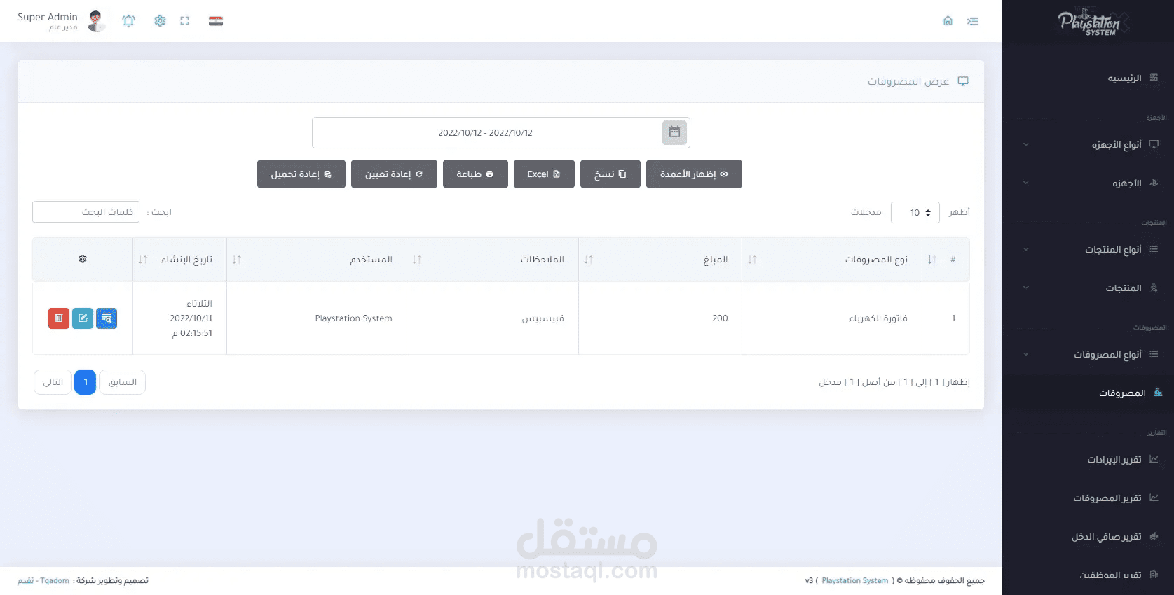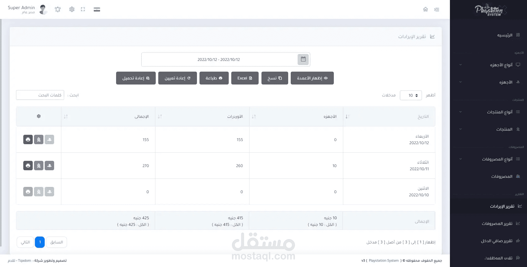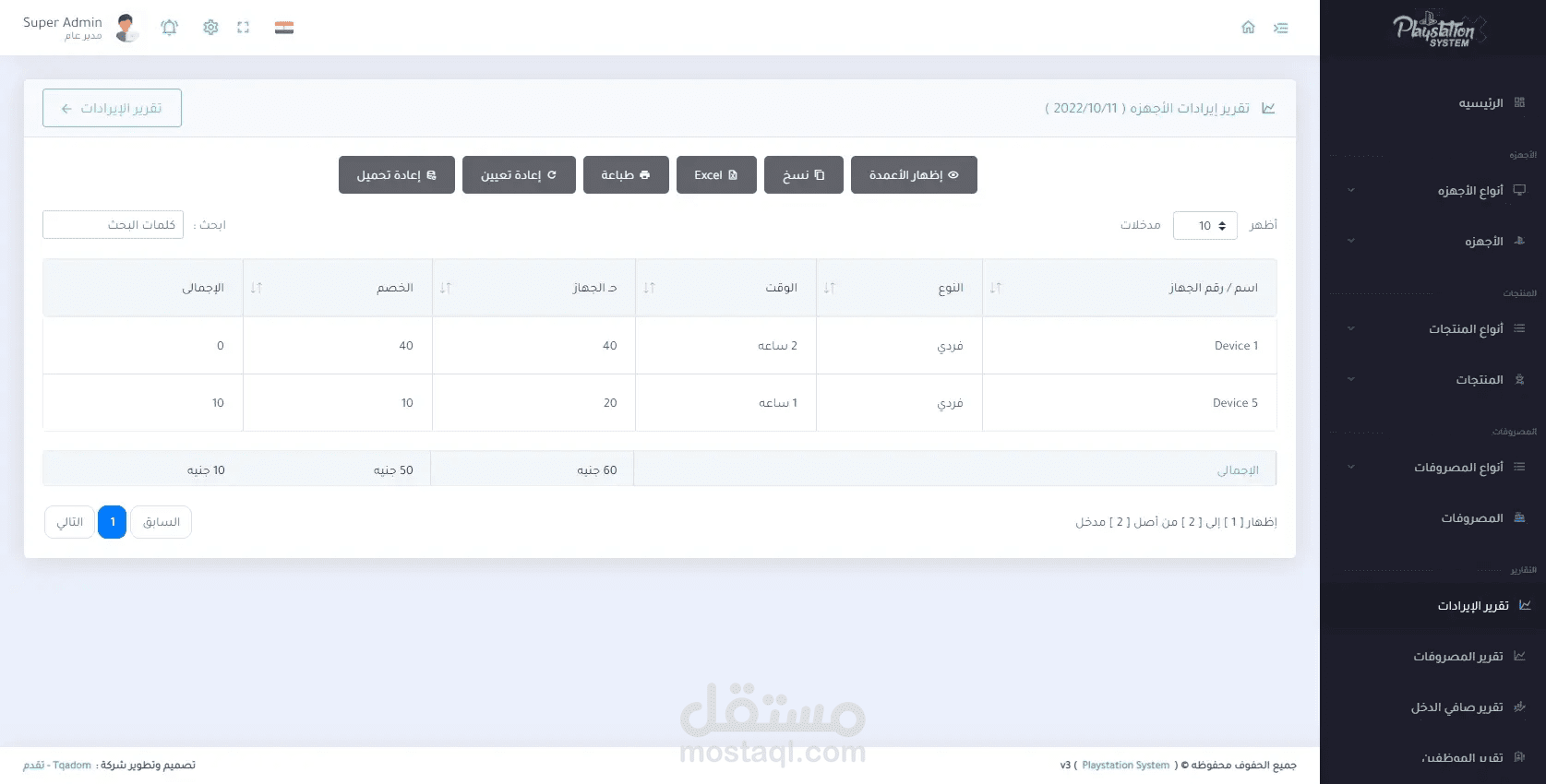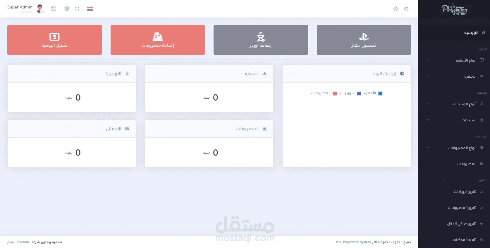 برنامج خاص بإدارة صالات ومحلات البلايستيشن يقوم البرنامج بالعديد من المميزات ومن اهمها هي فصل الأجهزه عن بعضها البعض والتنبيه بالإنذار عند انتهاء وقت الجهاز وإضافة الطلبات من مأكولات ومشروبات على حساب الجهاز ثم إنشاء فاتوره لكل جهاز لطباعتها ويمكنة ايضاً إعطائك جميع حسابات المشروع من إيرادات ومصروفات وصافي دخل المشروع .