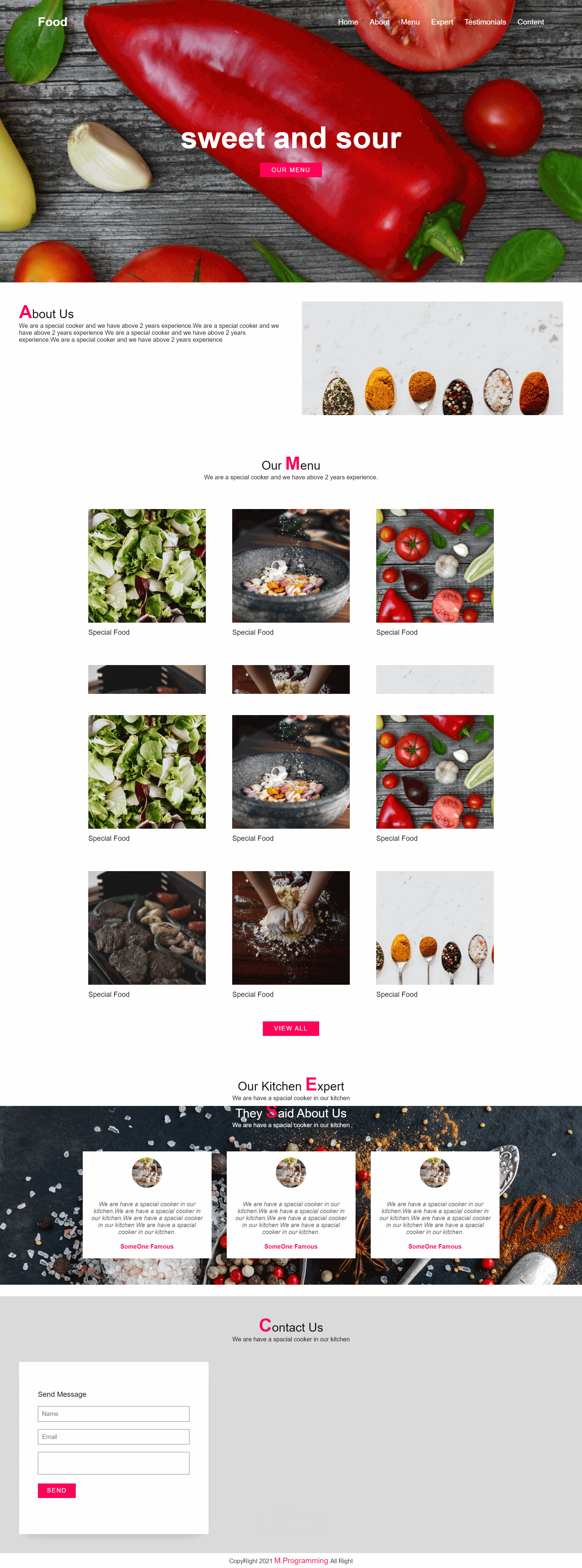 مشروع صفحه ويب باستخدام اللغات الاتيه: