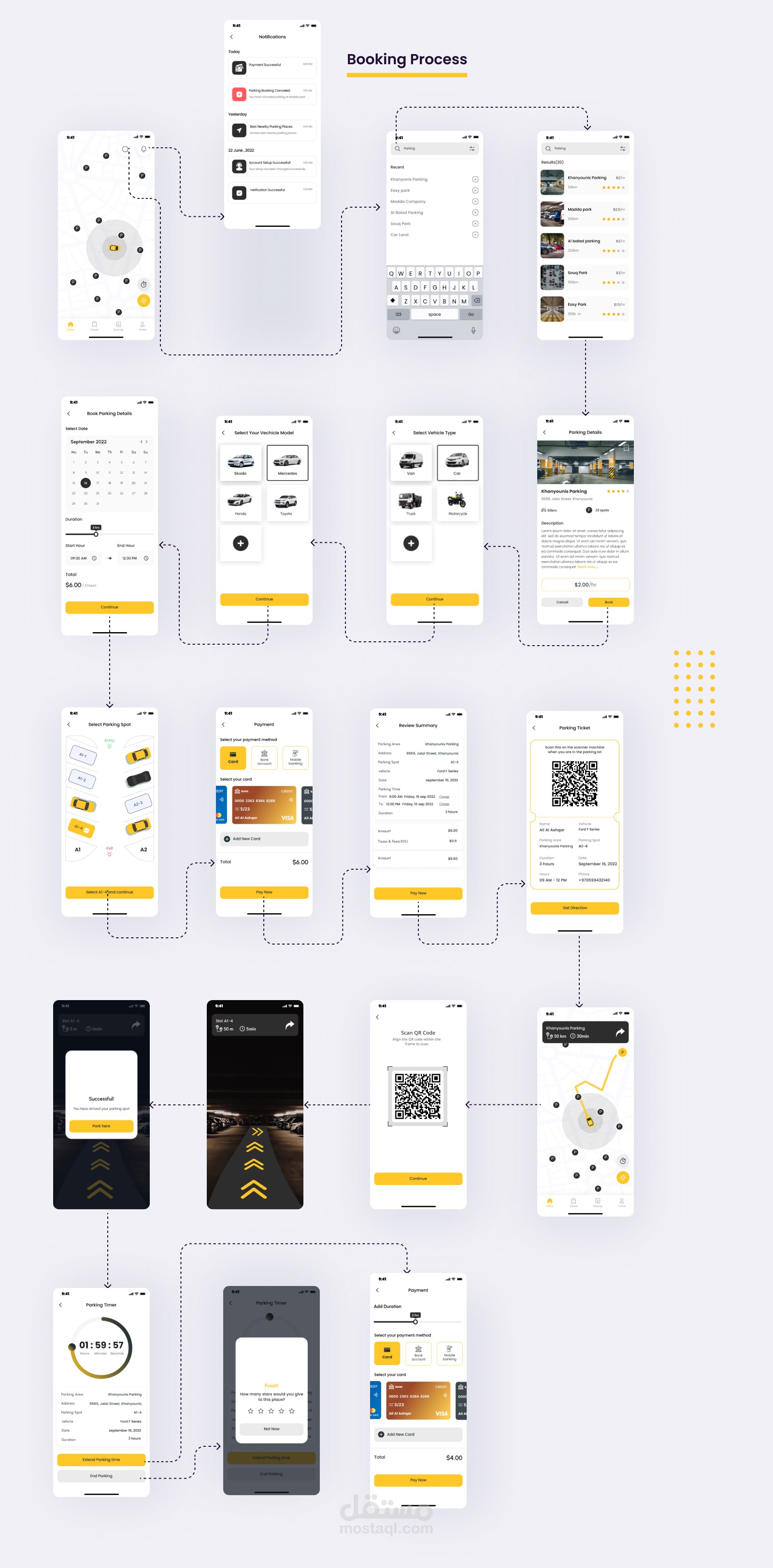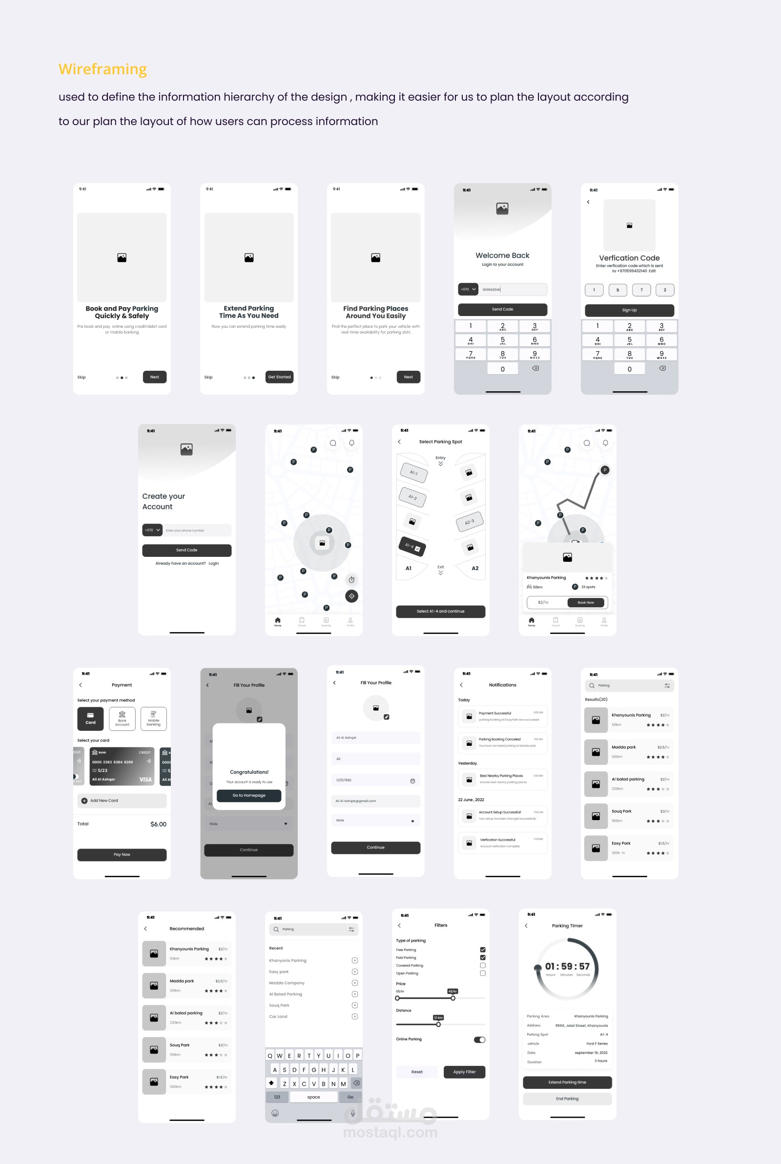 تصميم واجهات احترافية وجذابة لتطبيق لياقة حجز موقف للسيارة تم فيه اتباع جميع خطوات التصميم بدءاً بuser research و stackholder interviews بالإضافة إلى تحليل المنافسين competitors analysis، وتحليل ودراسة المستخدمين وإنشاء user persona، ورسم كافة المخططات من Information architecture, user flow, user journey و عمل سكتش ( رسم اولي) للشاشات، وعمل Wireframes انتهاء بال UI