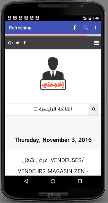 برمج التطبيق لكي يقوم بقراءة أخر المنشورات و الأخبار في المدونة بصفة وقتية و يقوم بإرسال تنبيهات للمستخدم على إثر كل منشور جديد. من خصائص التطبيق أيضا أنه: