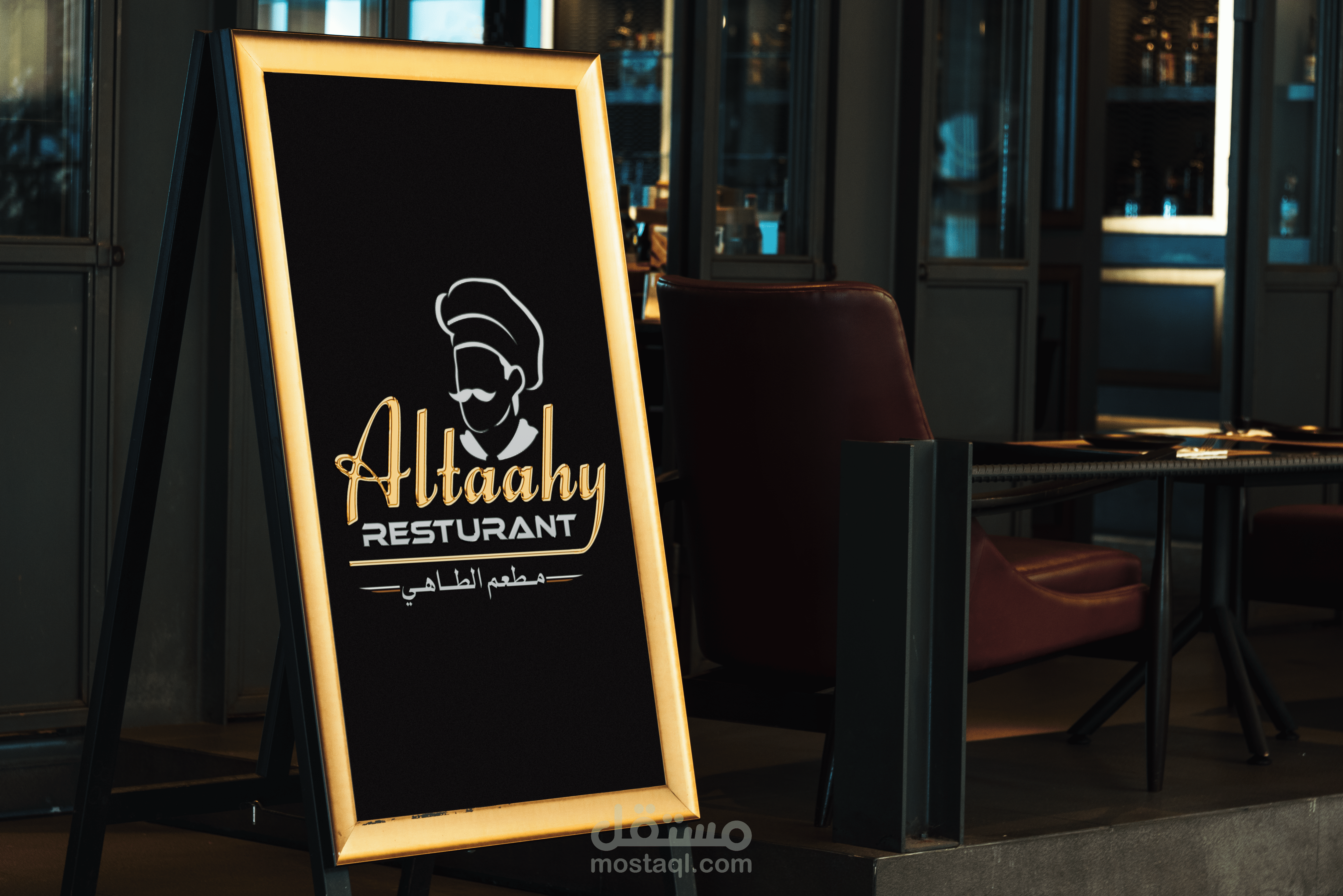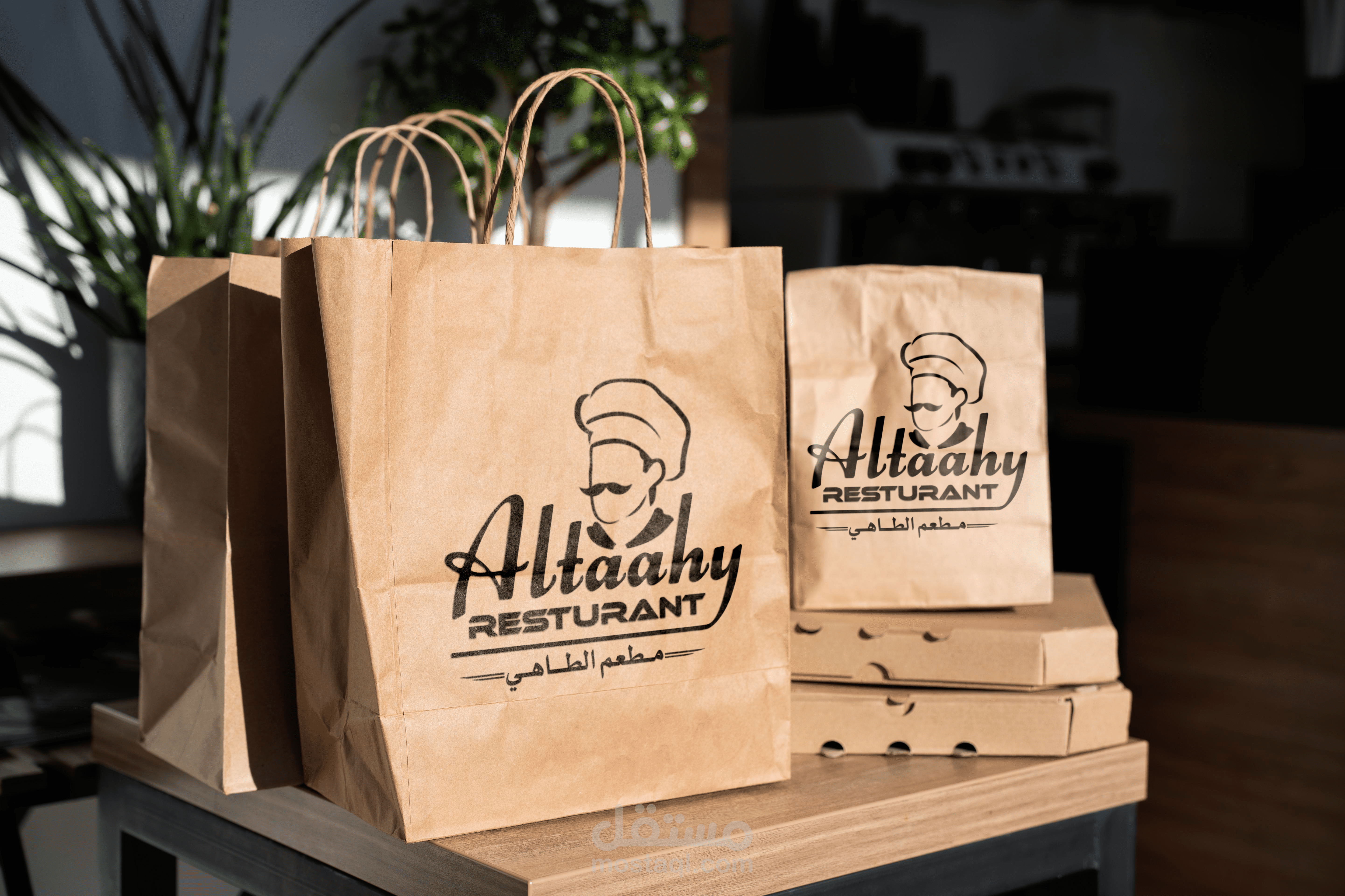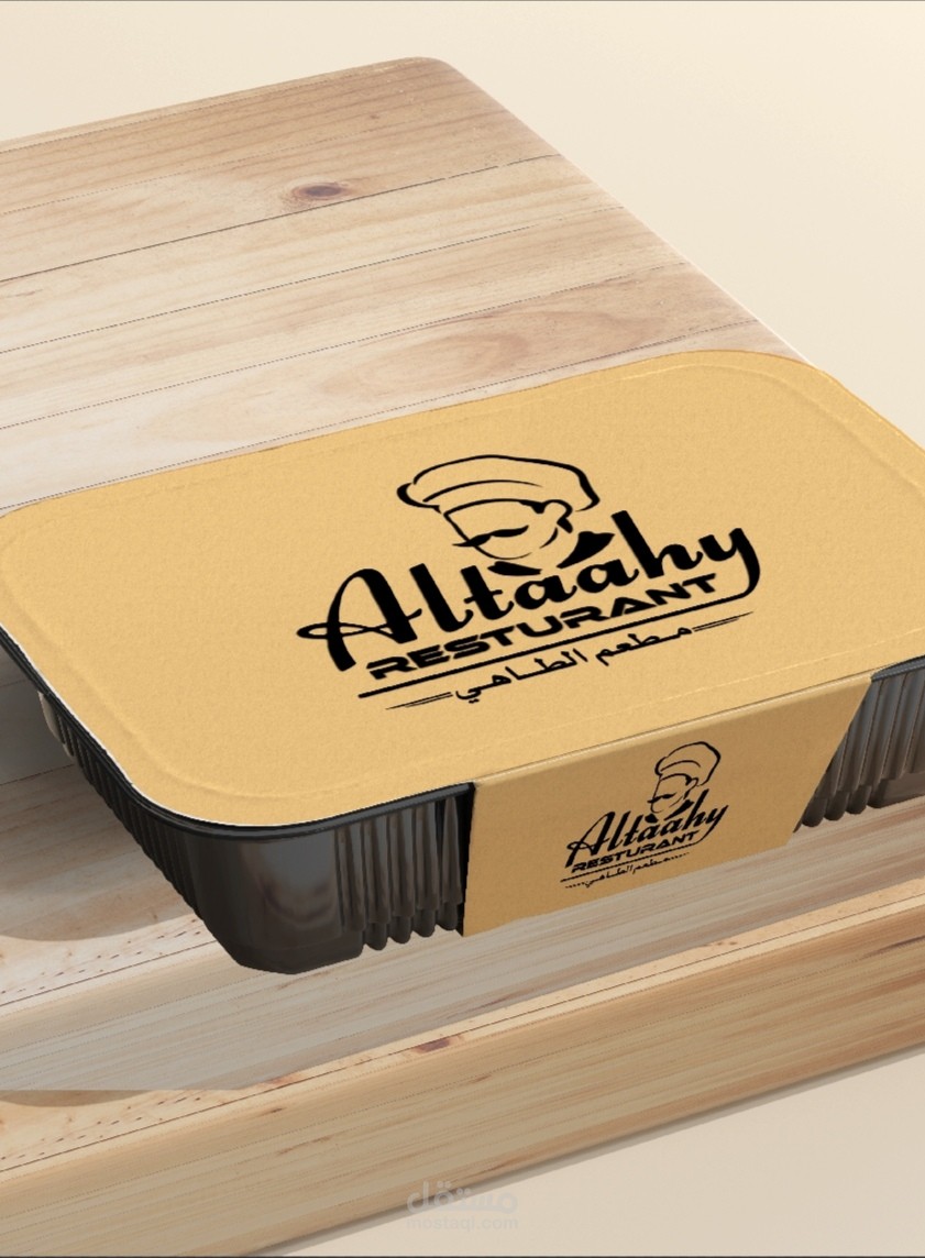 قمت بتصميم الشعار بالنسبة لقاعدة البسيط المألوف ختى يسهل على الزبون حفظه وتذكره، وقمت باضافة ملصق الطباخ لدلاله على اسم المطعم(الطاهي) ويرمز لكونه مطعم ايضاً قمت باستخدام اسم المطعم باللغة الانجليزية كنص اساسي حتى يبرز في عين الناظر واضافة كلمة مطعم بالانجليزي(Restaurant) بصورة متناسقة واخيراً اسم المطعم بالعربي لمن يتجاهل قراءة الاسم بالانجليزي كونه مطعم في دولة عربية
