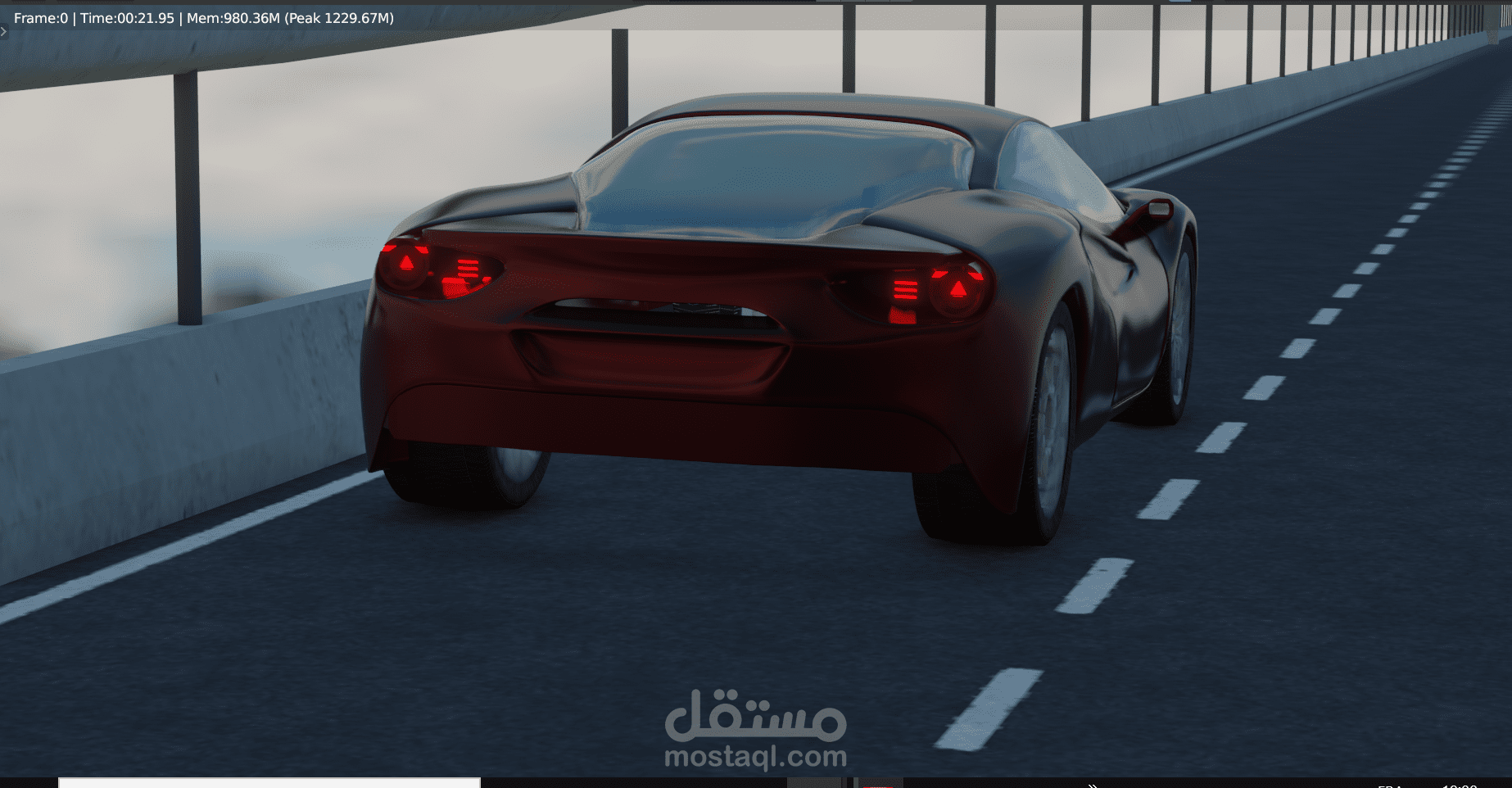 A 3D-designed racing car, using the blender program to animate and give life to the car with external influences and the outside world