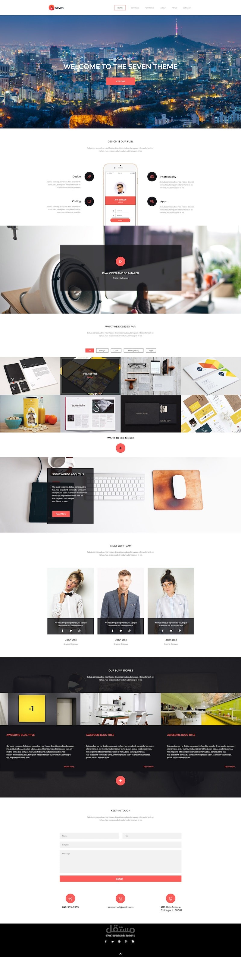 Seven is modern, creative PSD web template. Minimalistic and clean style great for self promotion or whole agency.