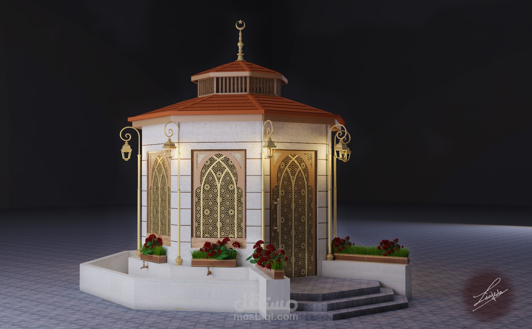 حيث تم استغلال الجوانب الخارجيه للمصلى بمغاسل للوضوء