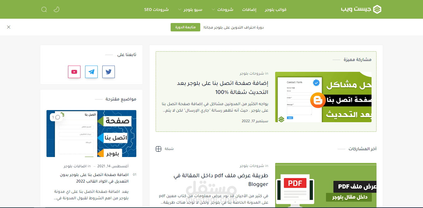 إنشاء مدونة بلوجر جاهزة للتدوين. ملاحظة من أجل تثبيت قالب جيست ويب يجب أن تشتريه من خلال إضافات الخدمة.