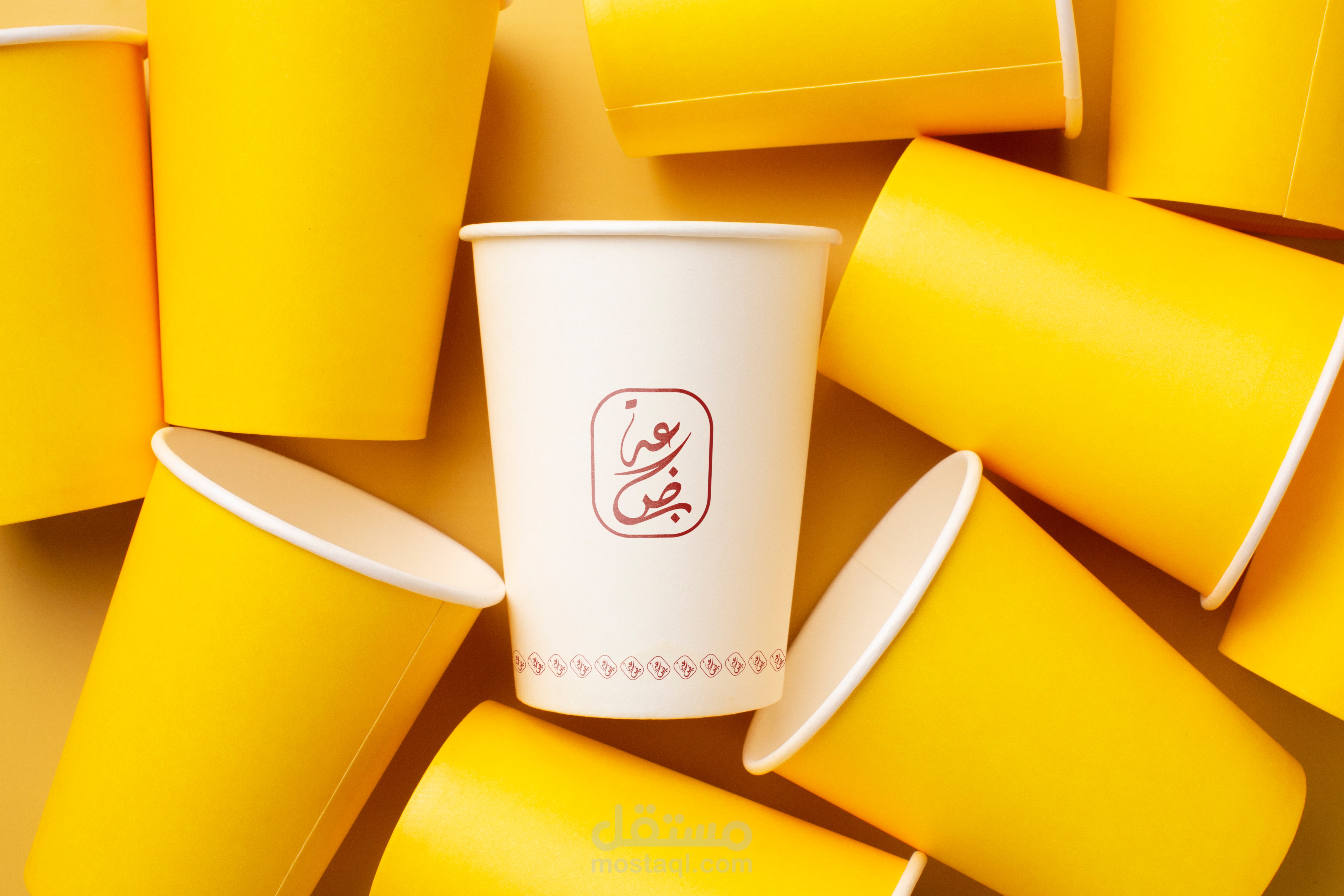 -تم تصميم كل مايلزم الهوية البصرية مثل بزنس كارت وأكياس المتجر والكؤوس وخلفية التطبيق.