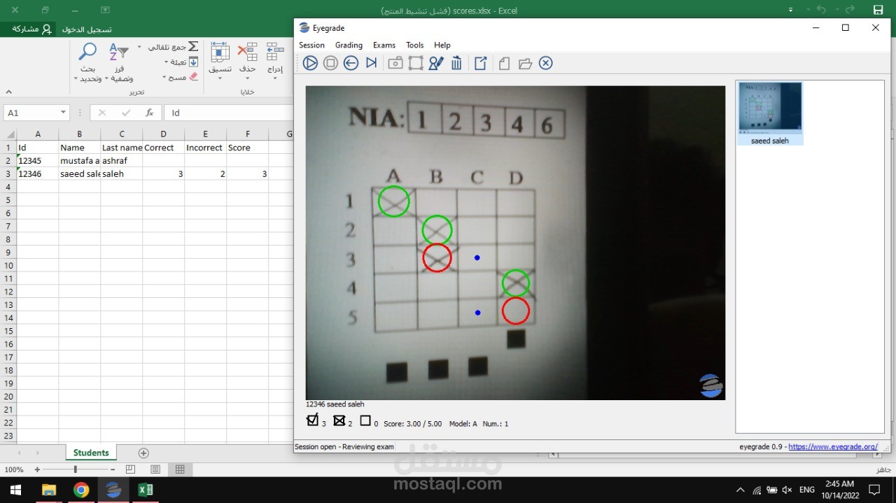 نظام لتصحيح امتحانات الاختيار من متعدد باستخدام رؤية الحاسب.