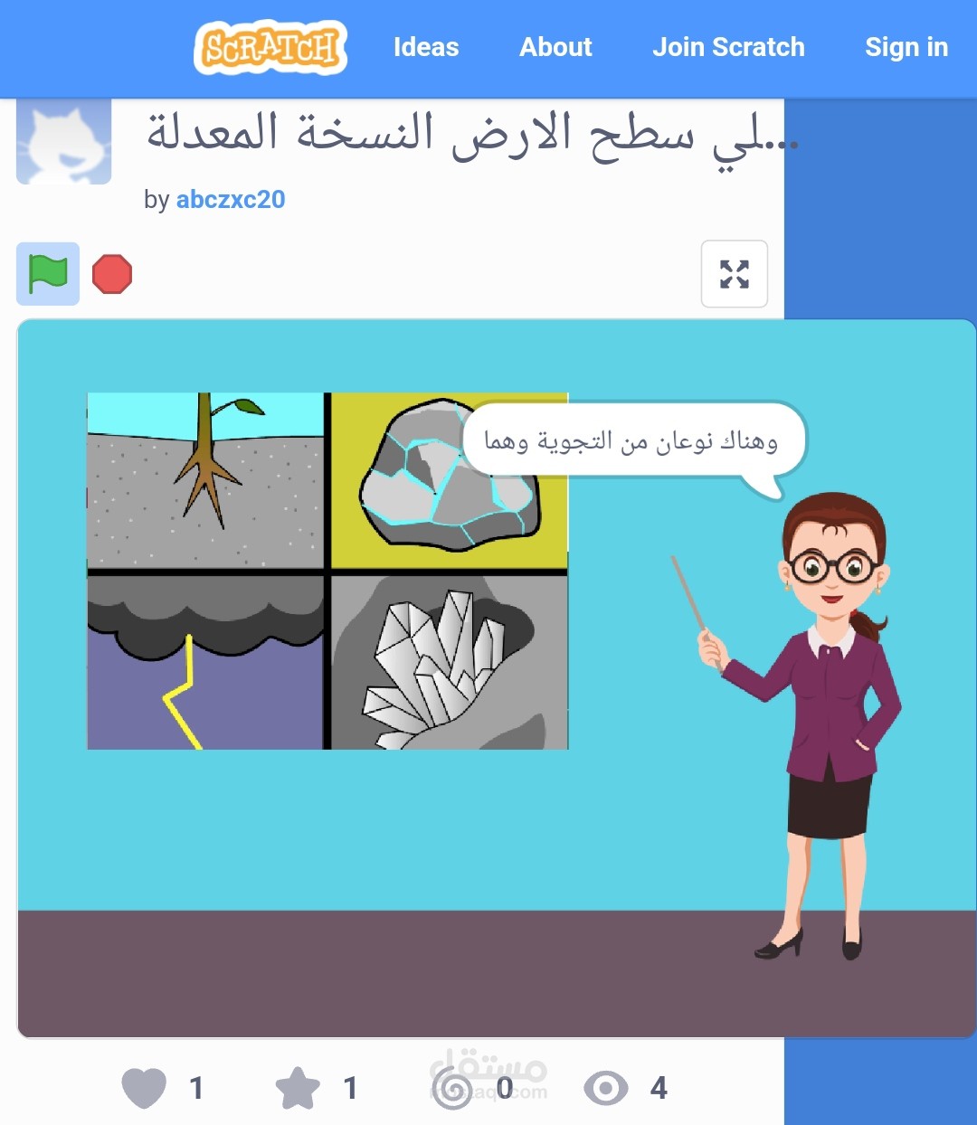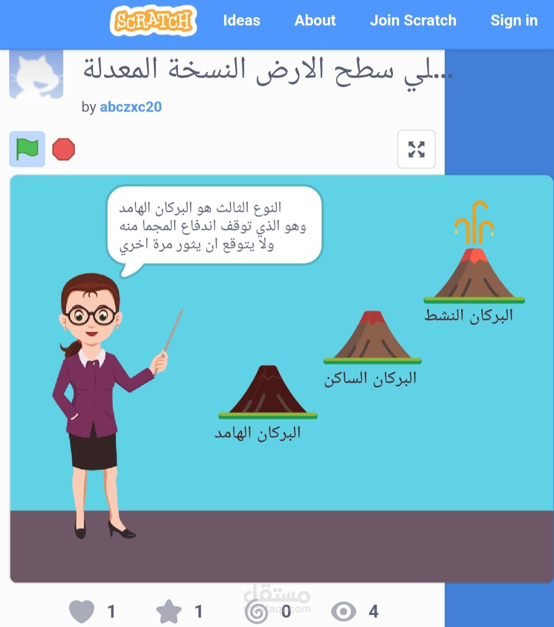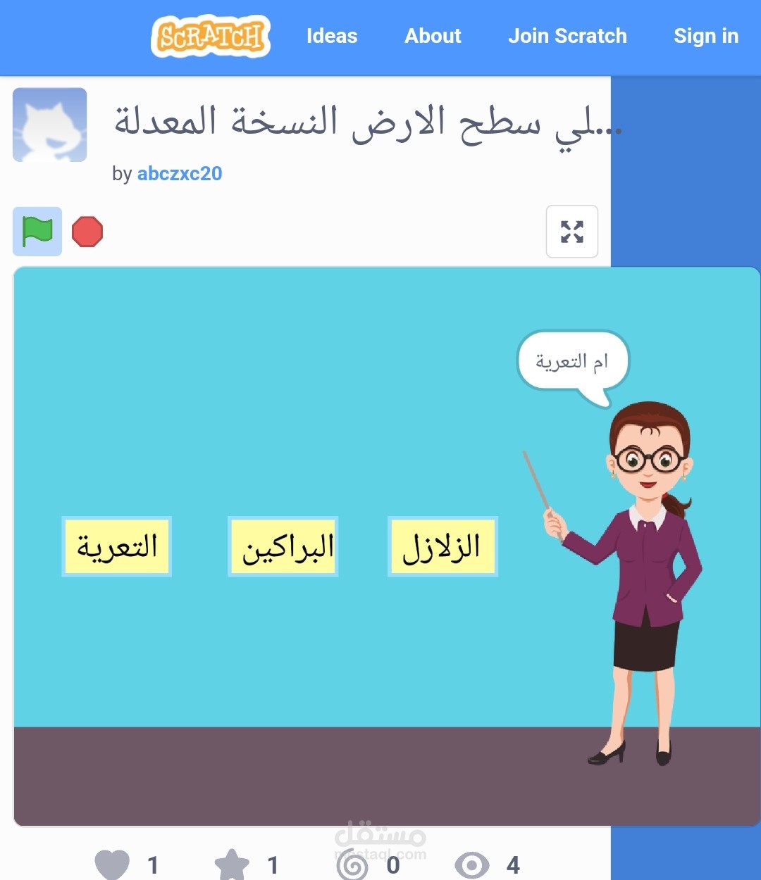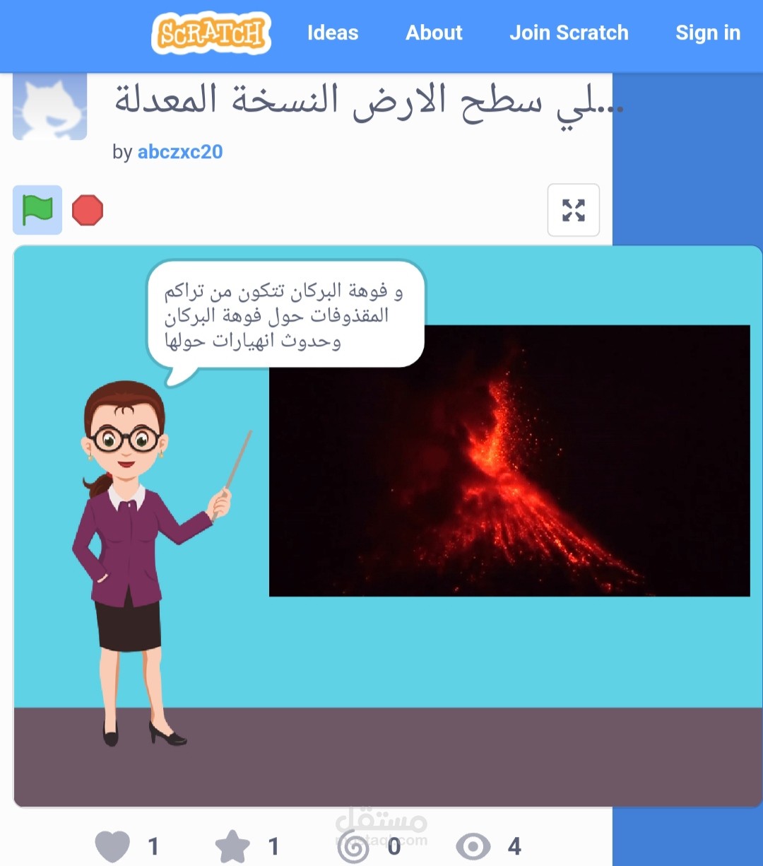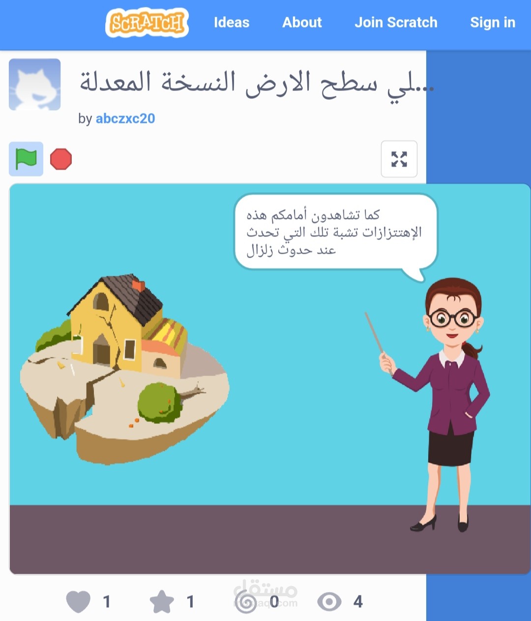 قمت بعمل مشروع لشرح درس الزلازل والبراكين باستخدام سكراتش