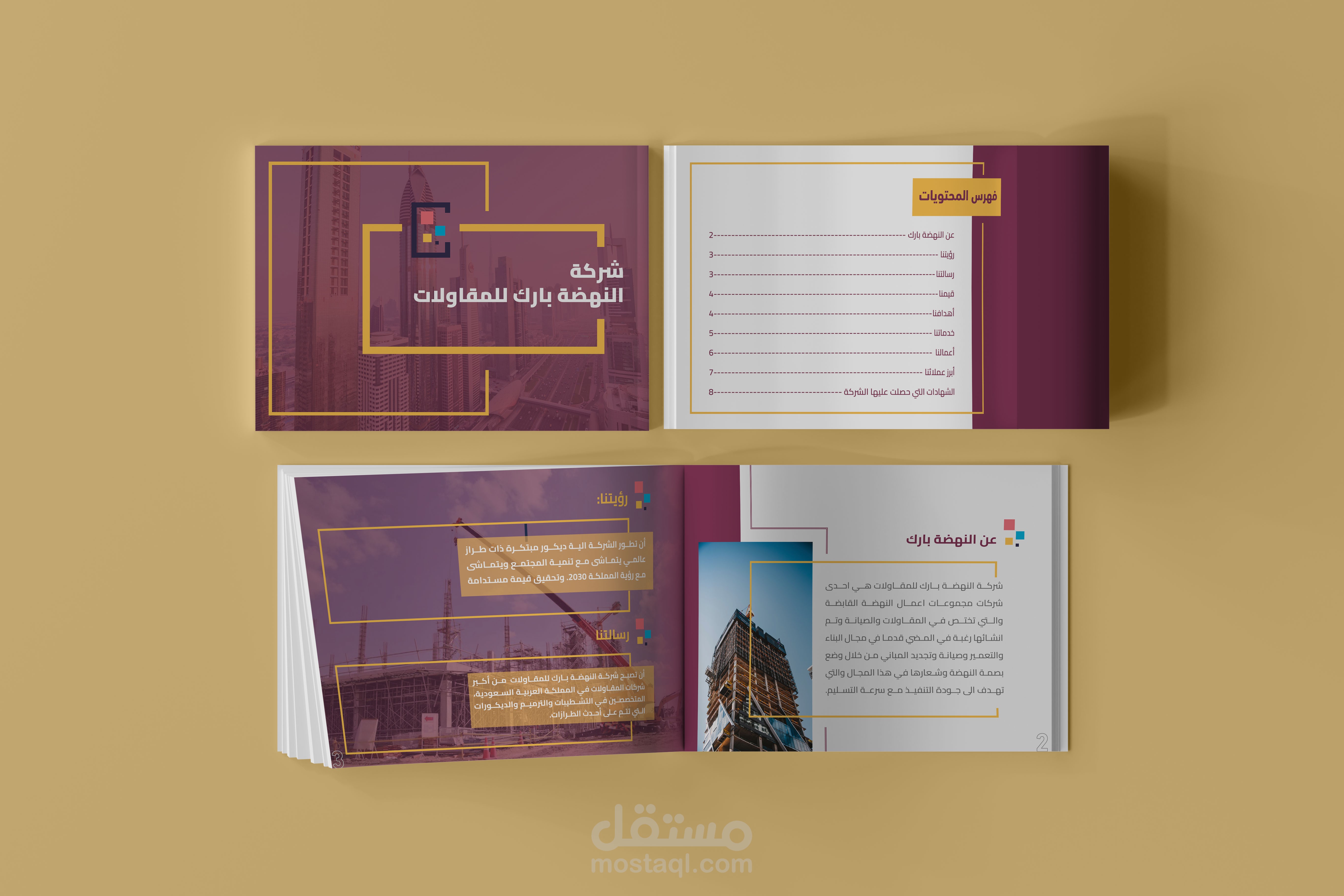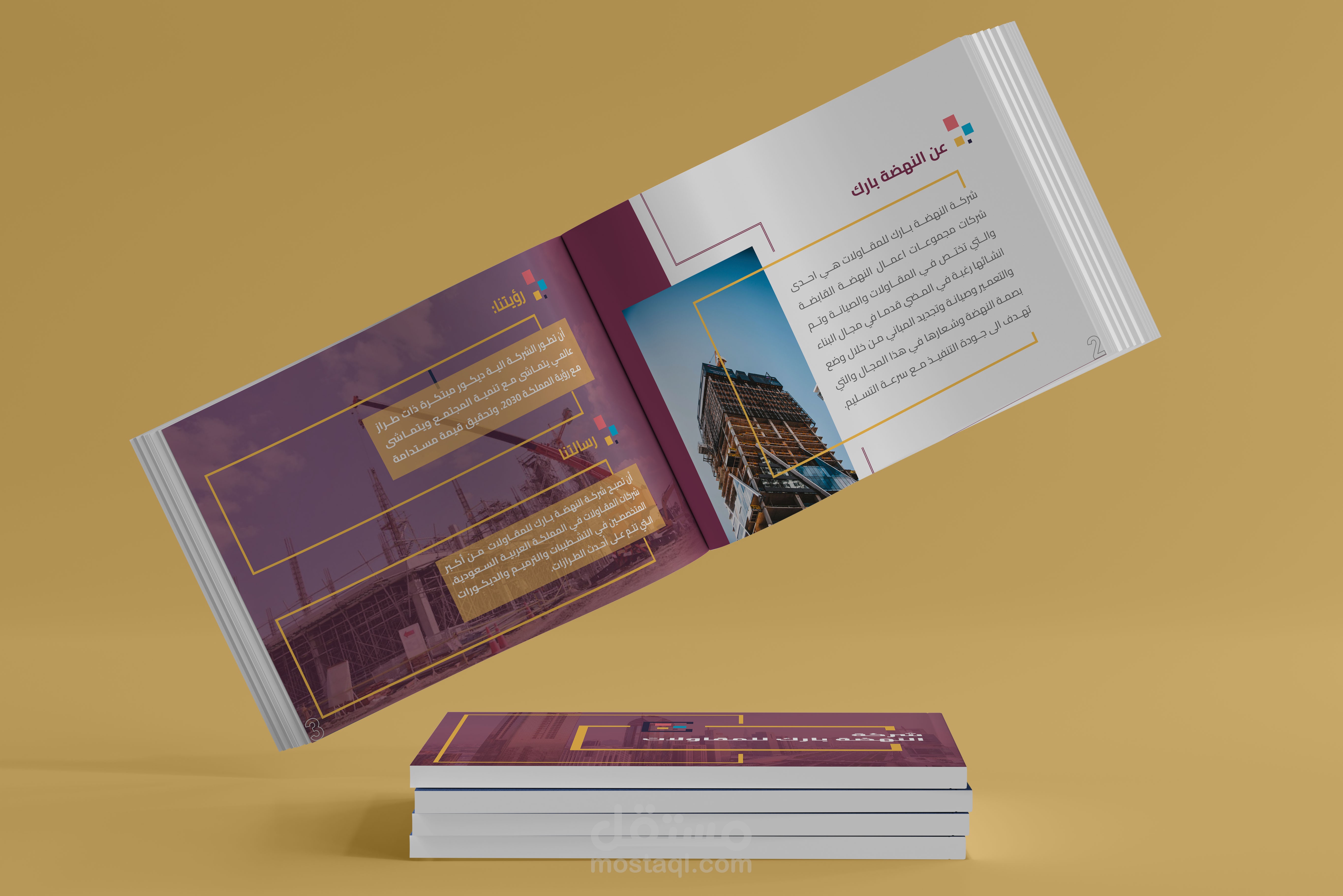 تصميم بروفايل تفاعلي خاص بشركة النهضة بارك باستخدام برنامج انديزاين