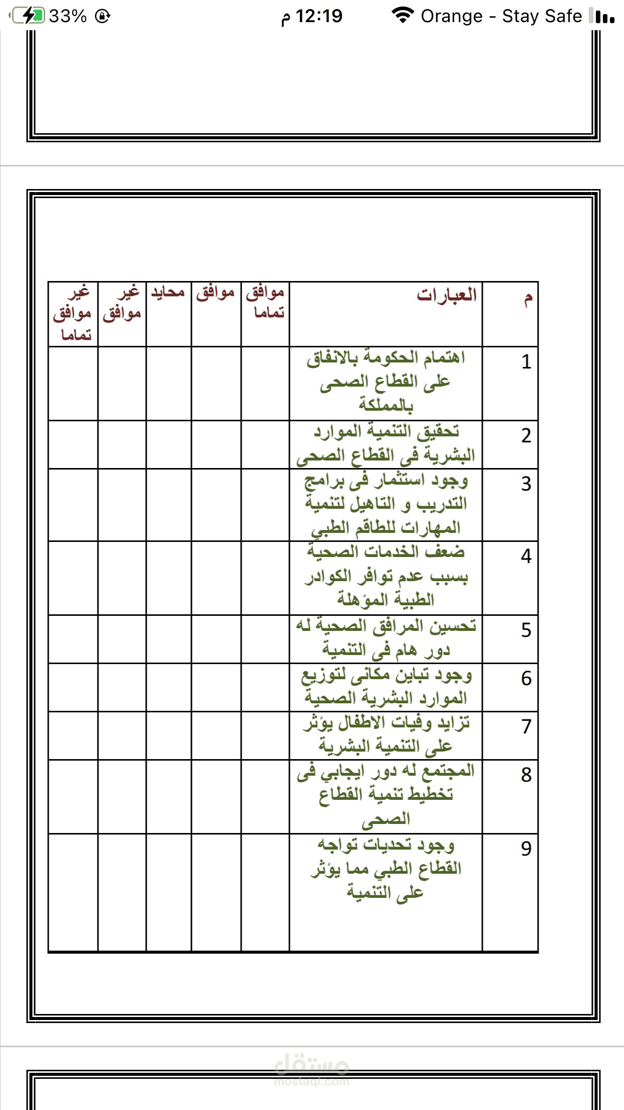 تم بفضل الله تعالى الانتهاء من عمل استبيان لرسالة ماجستير