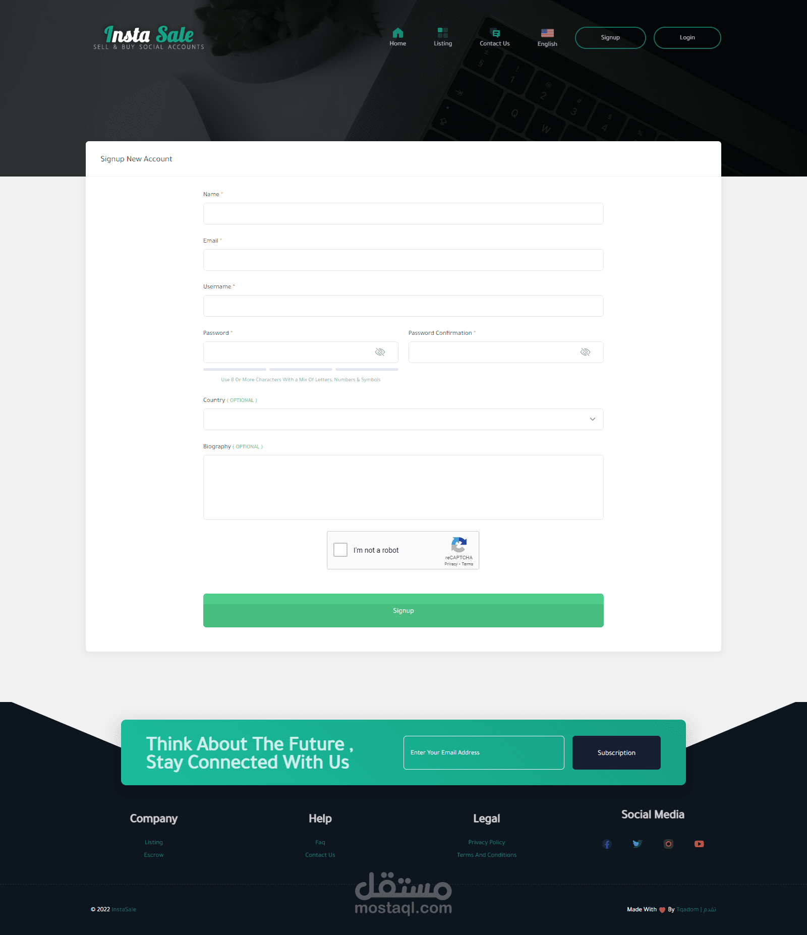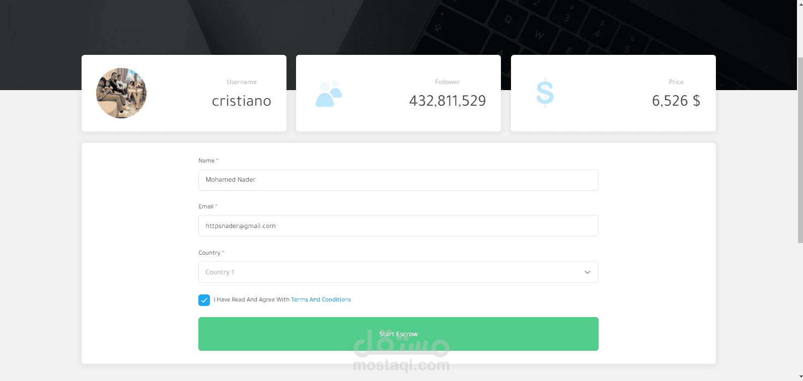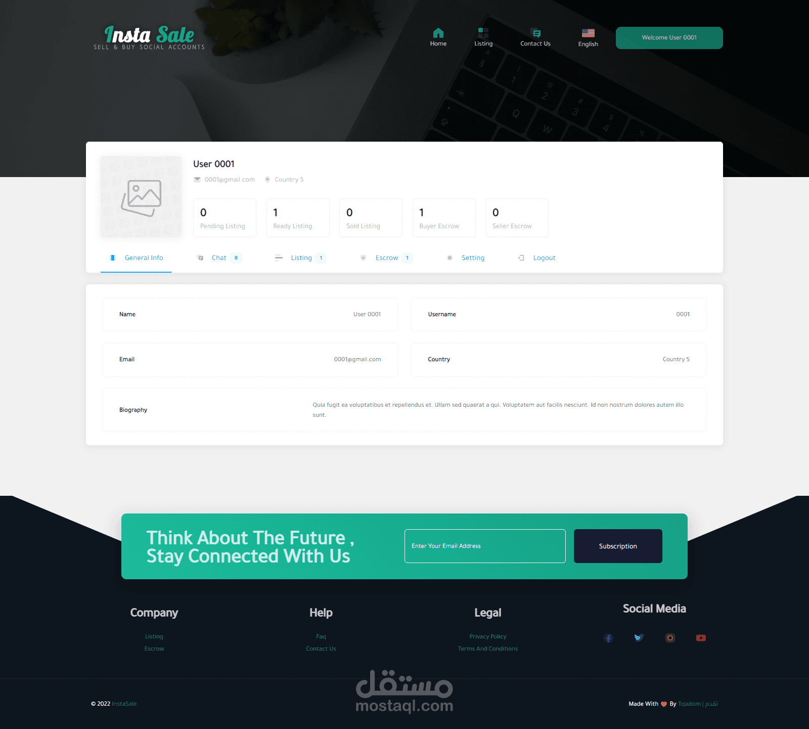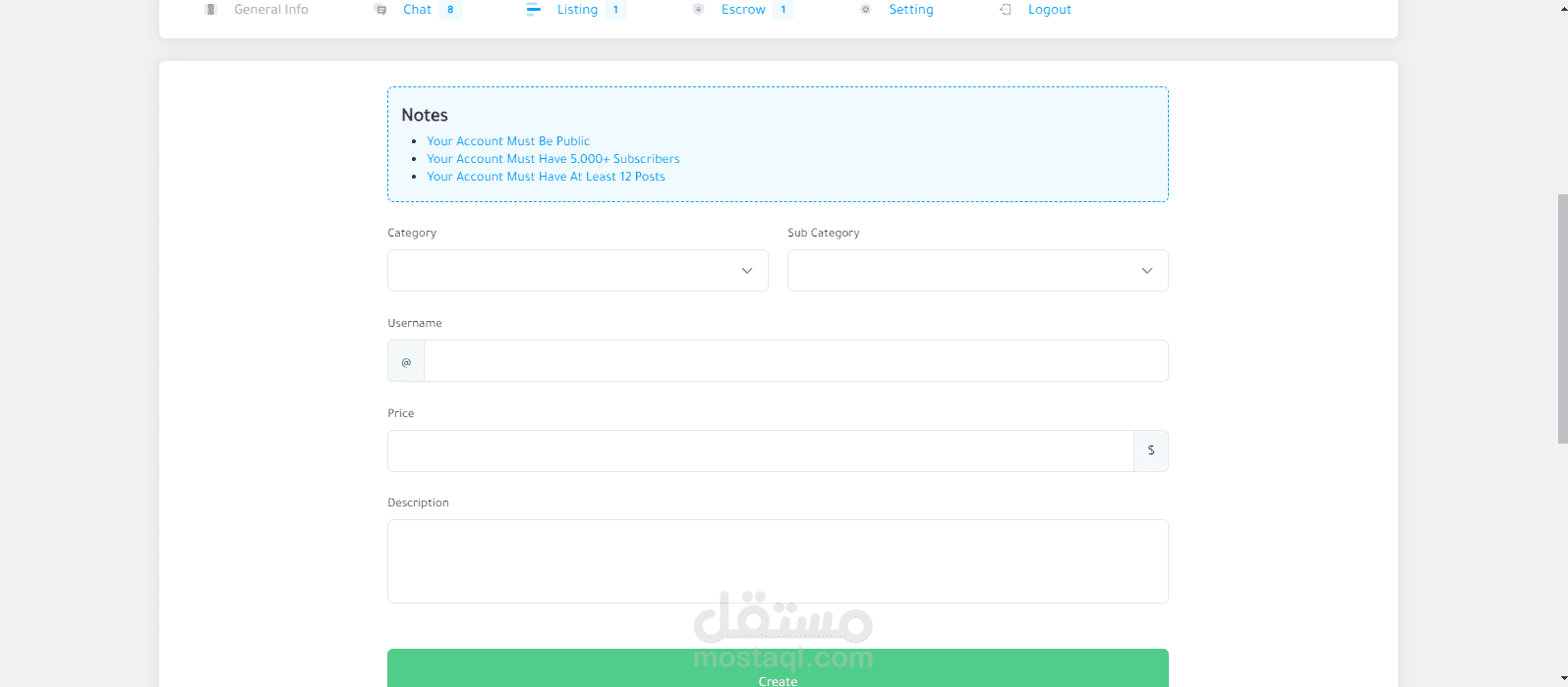 موقع للتجاره الإلكترونيه لبيع وشراء حسابات الـ سوشيال ميديا ومن اهمها حسابات الإنستغرام حيث يقوم المستخدم بإنشاء قائمة بيع جديده بحسابه الشخصي ويقوم الموقع بعرضها وعند توفر الشراء يقوم الموقع بتأمين ذالك ثم يقوم الموقع بإتخاذ نسبه من المدفوعات .