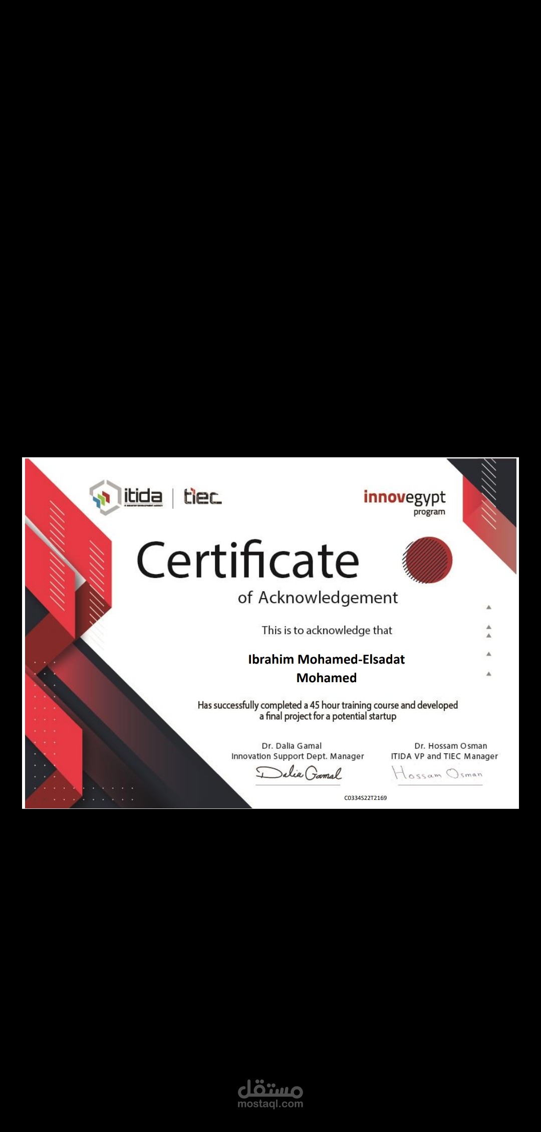 شهاده في ريادة الأعمال مقدمة من وزارة الاتصالات وتكنولوجيا المعلومات المصرية