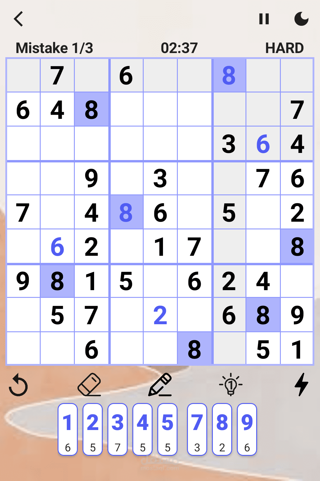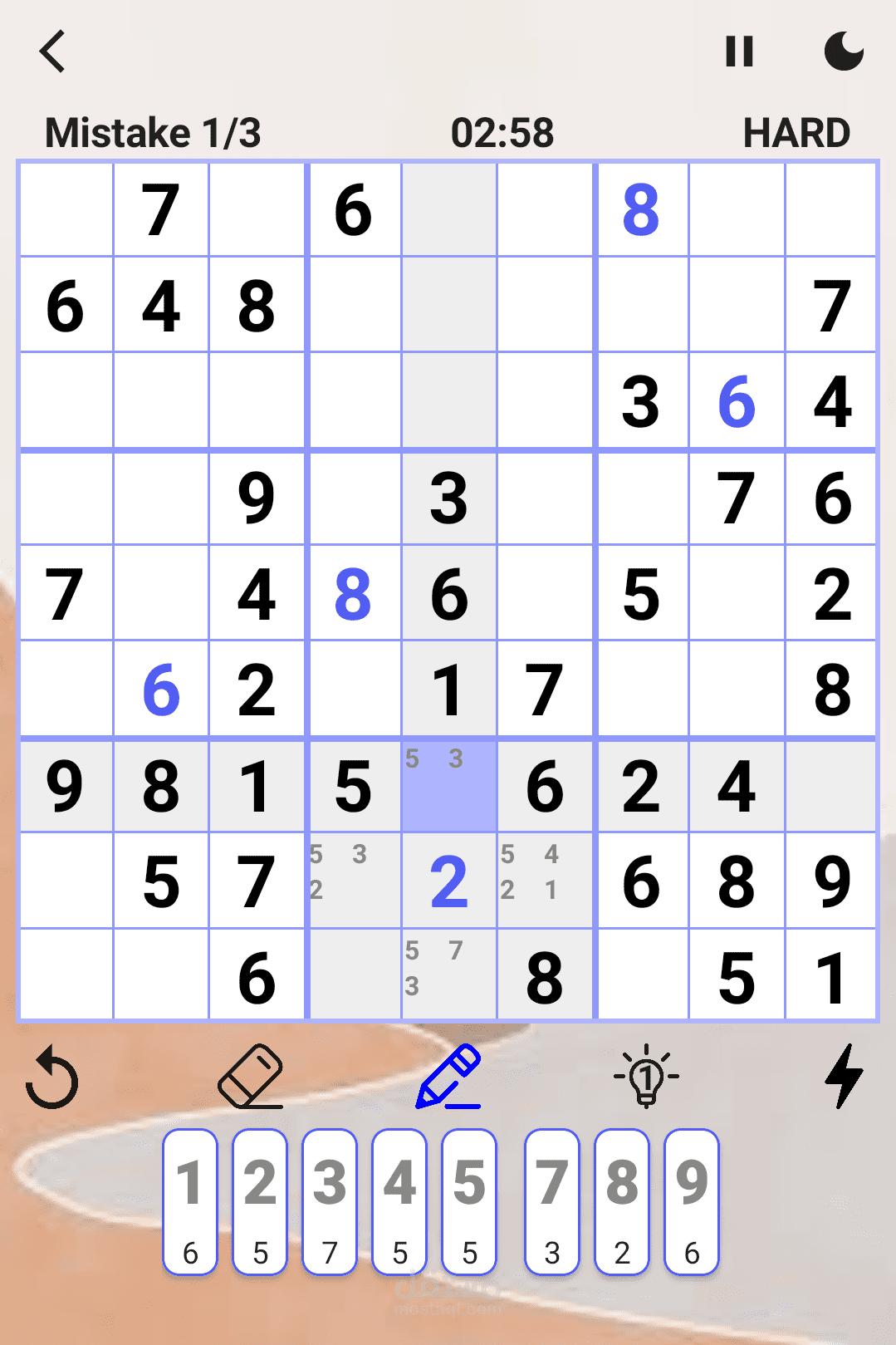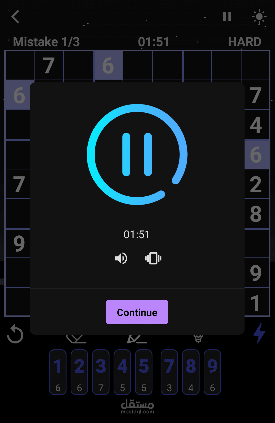 لعبه سودوكو الشيقه والمقويه للعقل يمكن للمستخدم الاستمتاع بها بجميع المستويات المختلفه