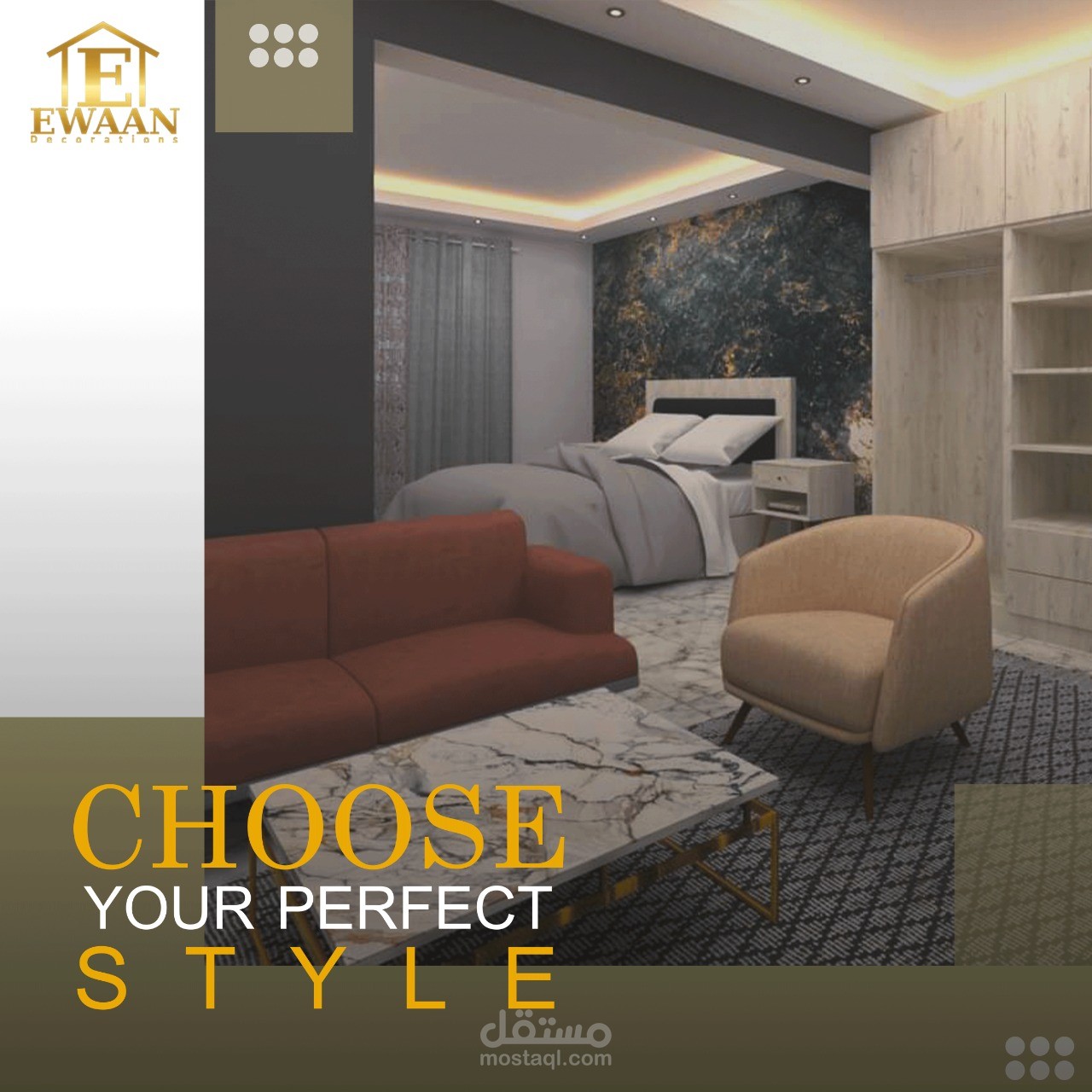 إنشاء خطة تسويقية و تصميمات وإدارة صفحات سوشيال ميديا لشركة إيوان للديكور والتشطيبات