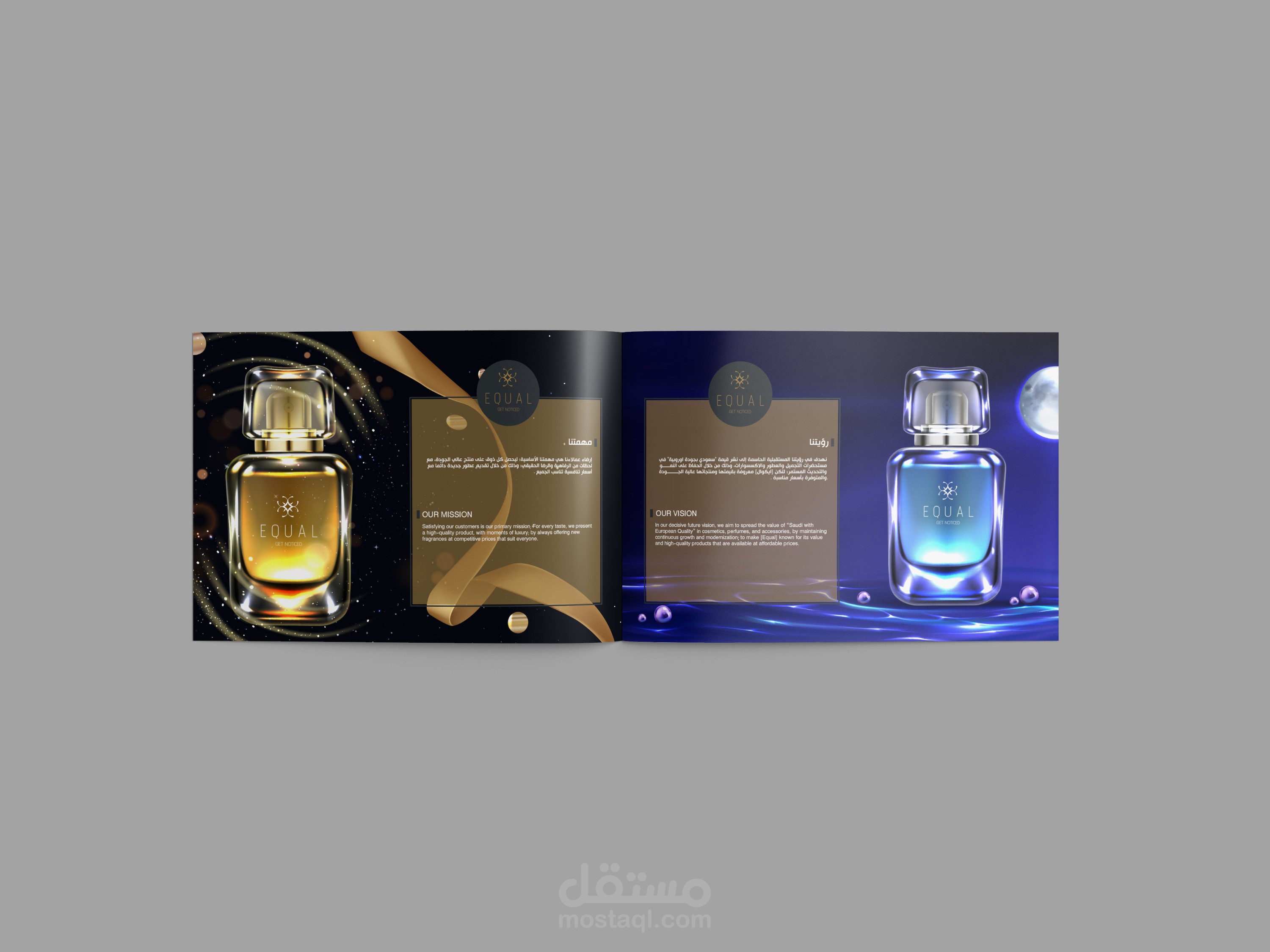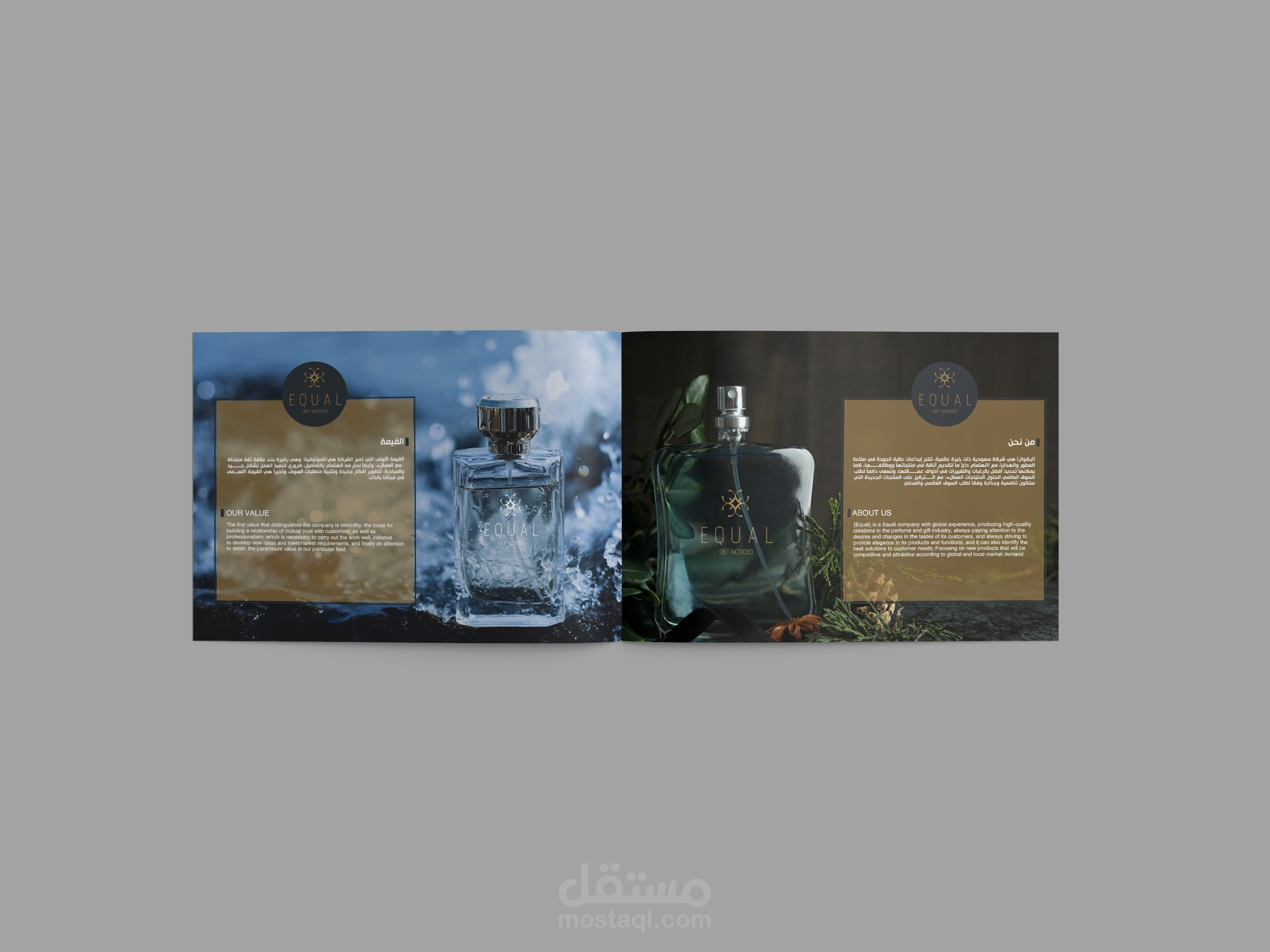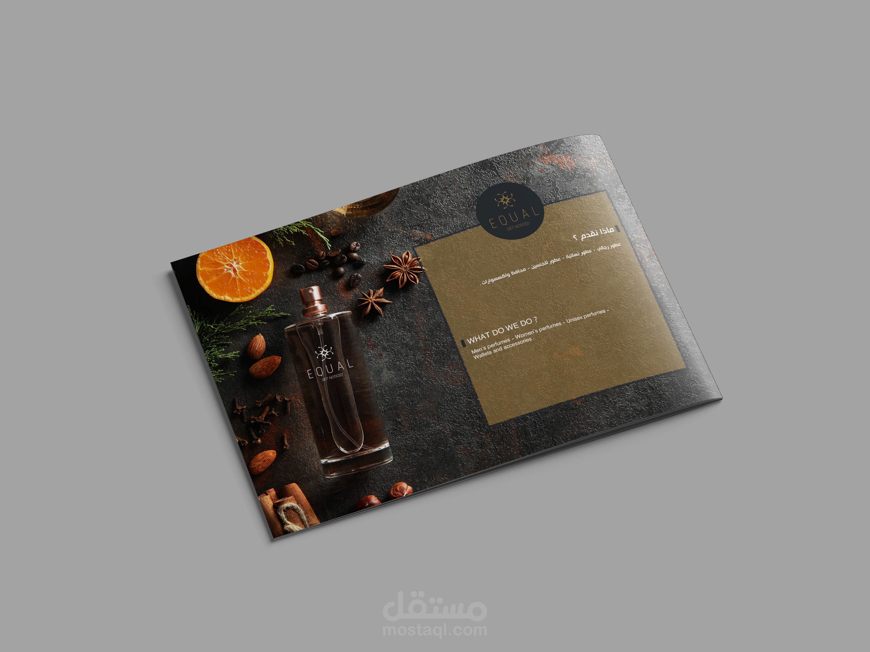 عمل company profile متميز لشركة equal المتخصصة في العطور وعرض ماهيتهم وخدماتهم بشكل متميز يجذب العملاء والاماكن التي يمكنها ان تستضيف فروع لهم كالمولات ومنافذ البيع الكبري .