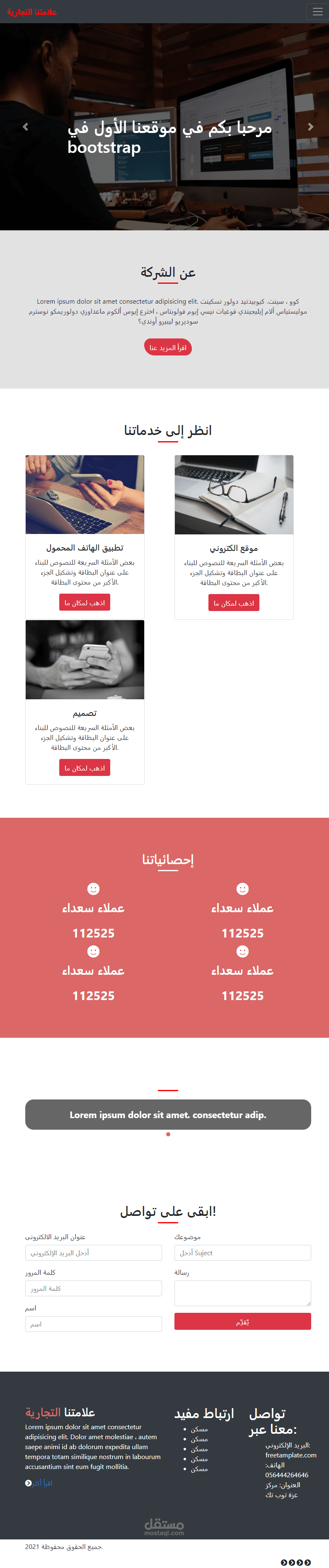 موقع تجريبي استخدمت html , css ,bootstrap 4 في عمل الموقع