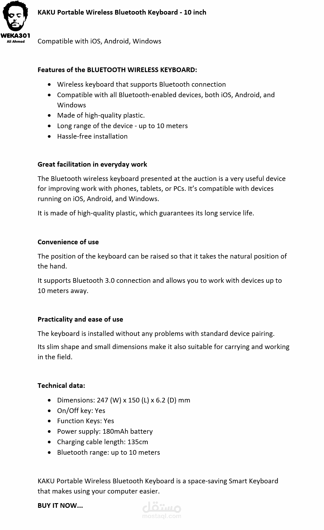 • البحث عن الكلمات المفتاحية الخاصة بكل منتج ثم كتابة محتوى وصف المنتجات باستخدام الكلمات المفتاحية وتسليم العمل على ملفات word.