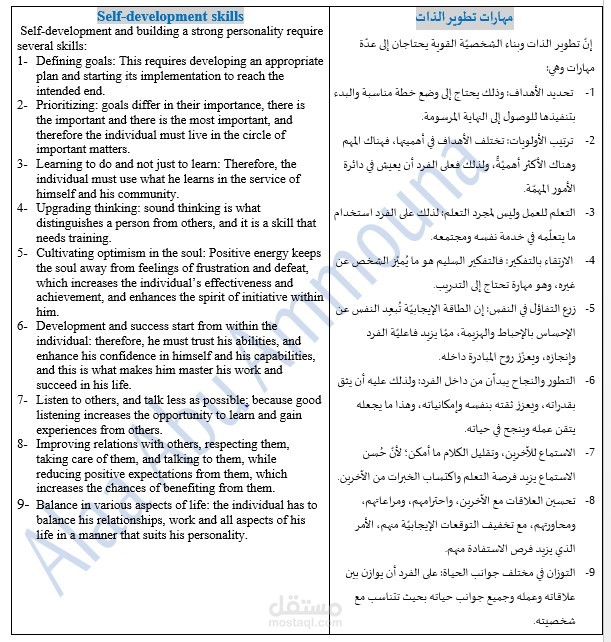 ● ترجمة دقيقة واستخدام مناسب للمصطلحات والألفاظ في أماكنها.