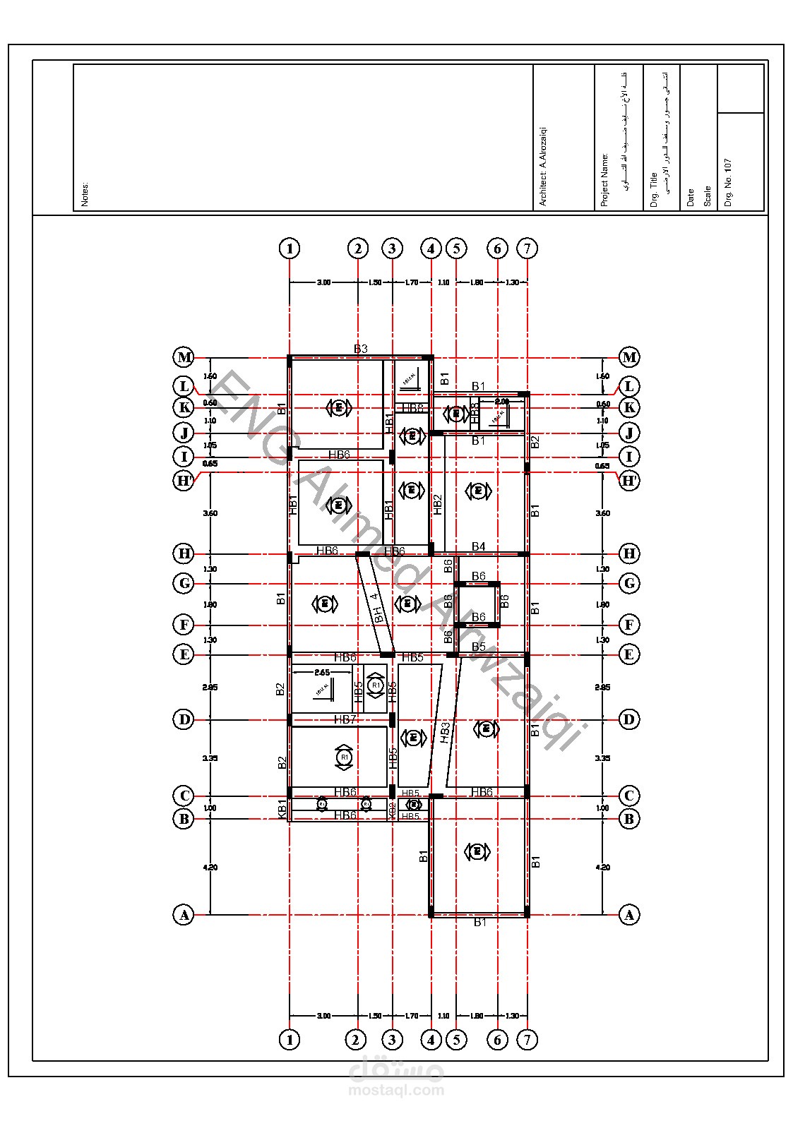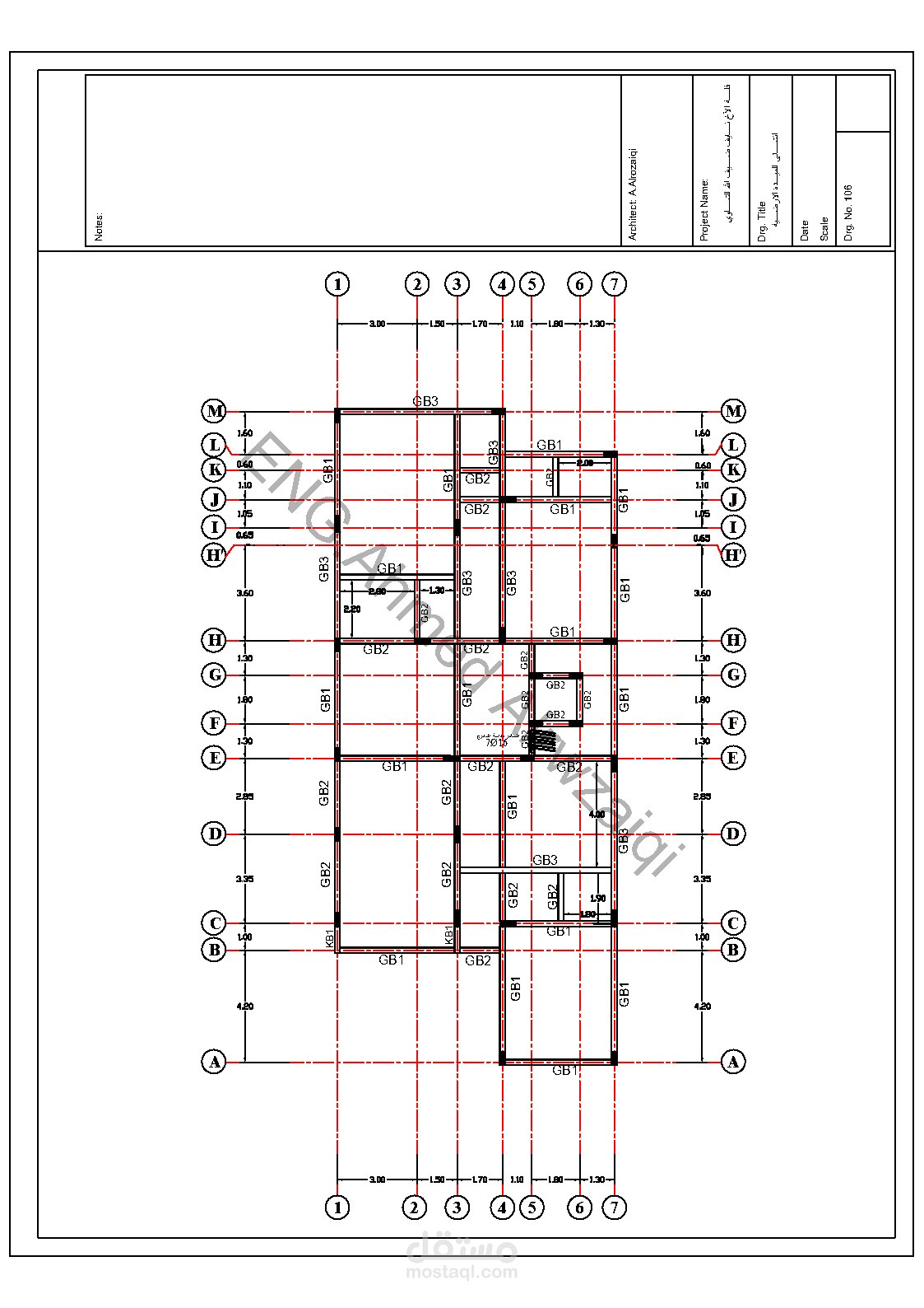 تصميم معماري وانشائي لفلة سكنية 15*30 متر