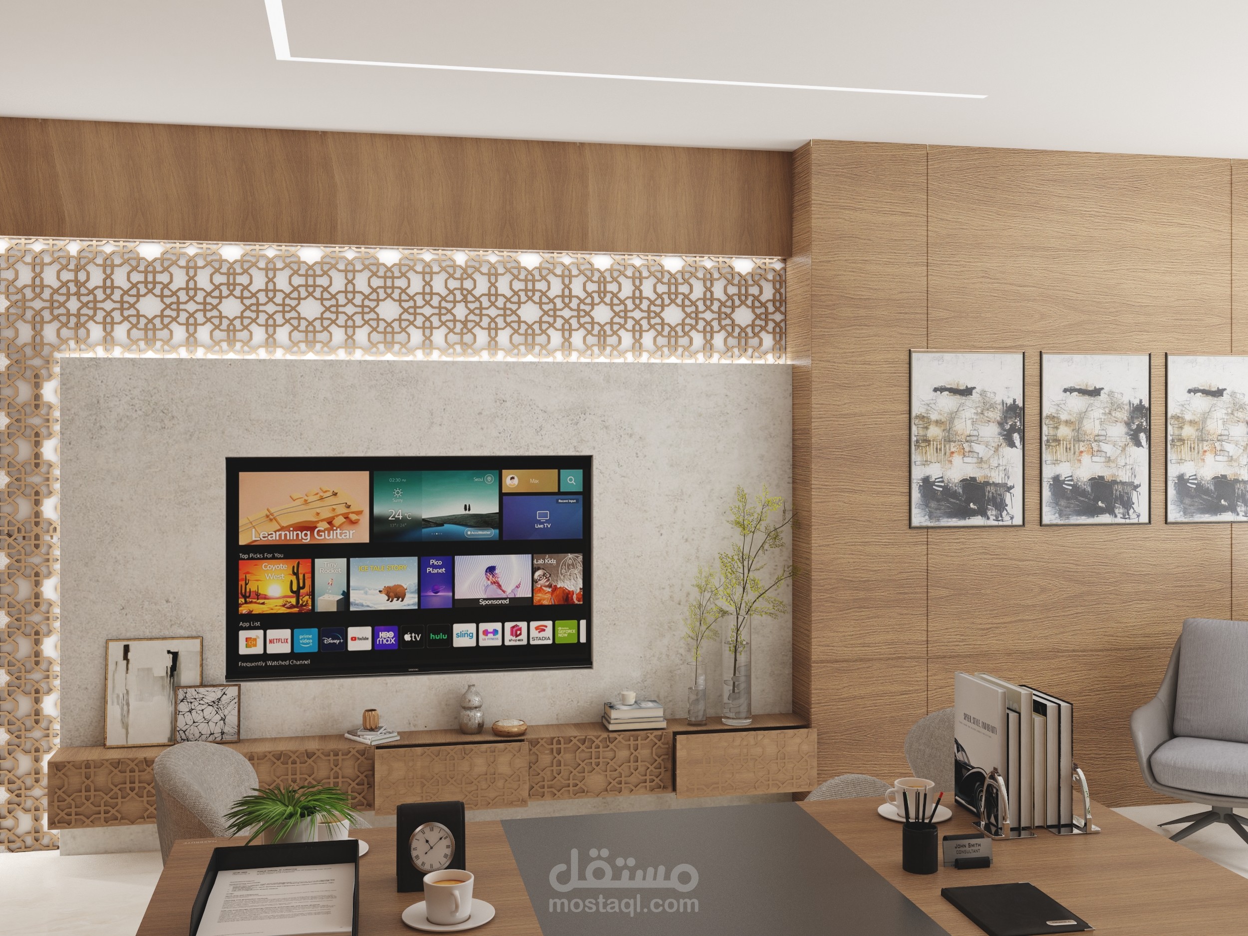 Admirative office that reflects the identity of the place itself with using cnc, wood and other elements upon the client's request