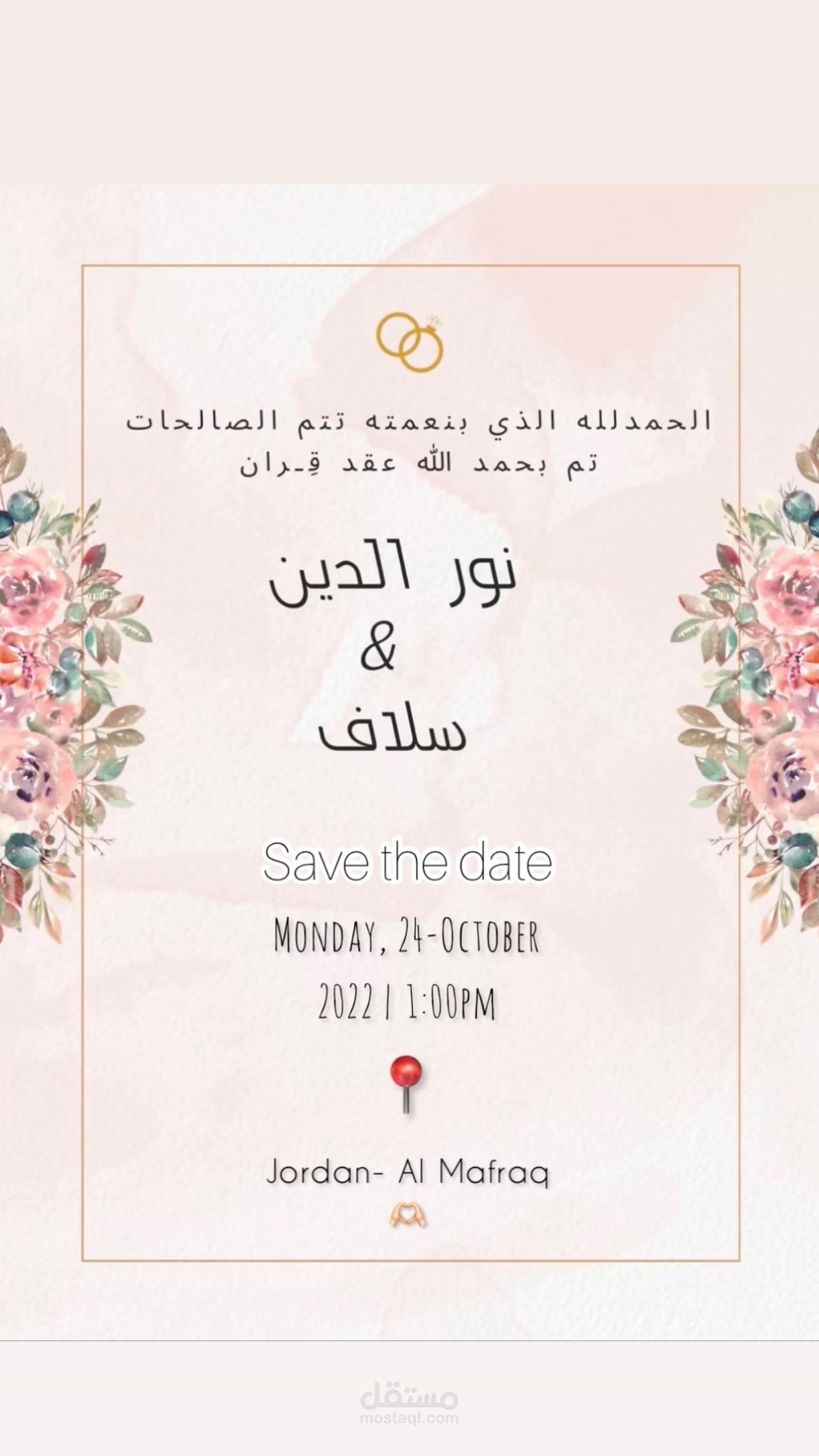 تم تصميم بطاقة دعوة عقد قران على برنامج canva