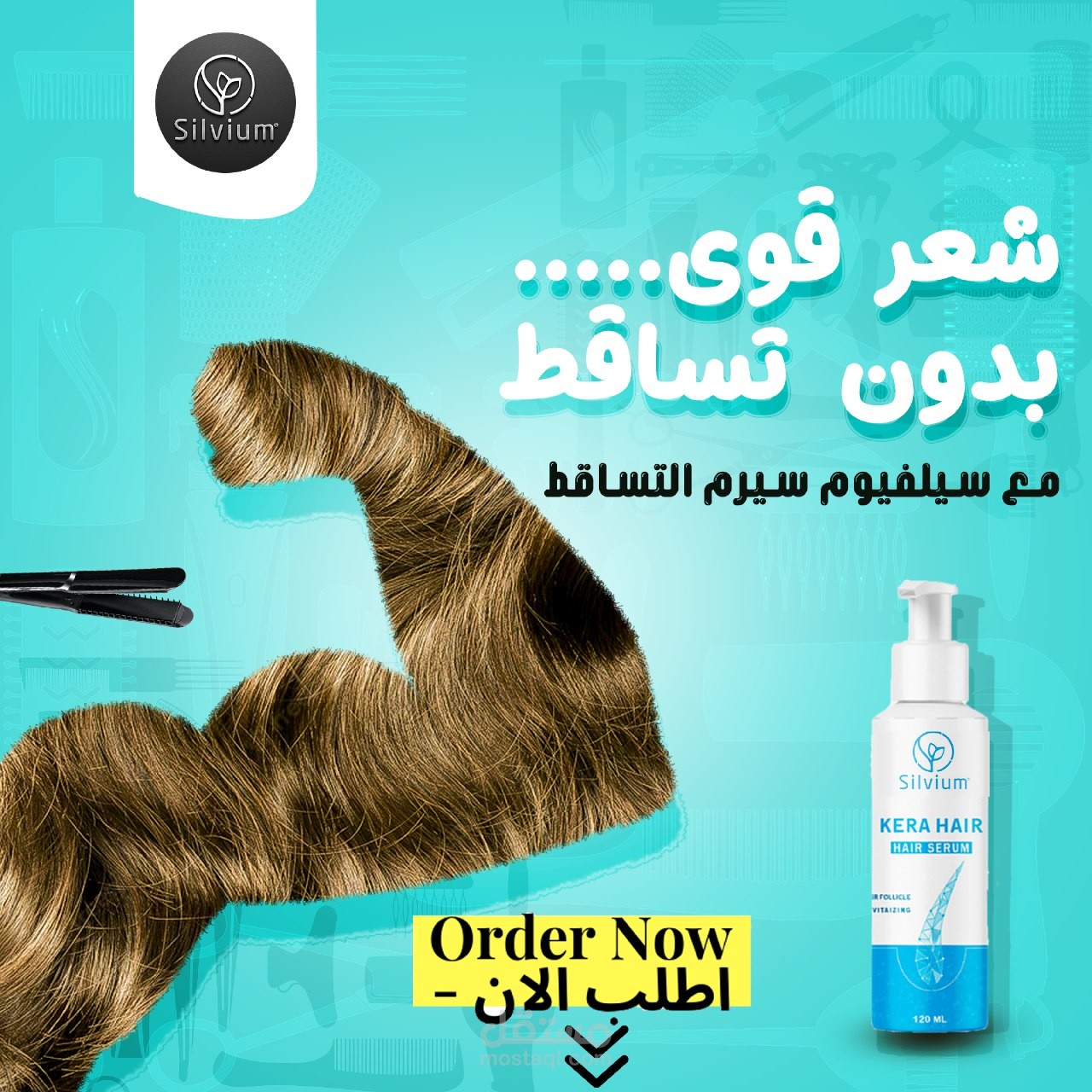 تصميم سوشيال ميديا لموقع فيس بوك لمنتج لتساقط الشعر يعتمد علي الجاذبيه للألوان وتوصيل فكرة القوة للشعر مع المنتج