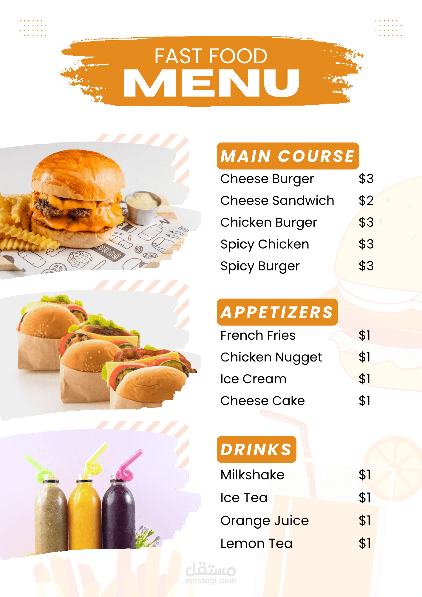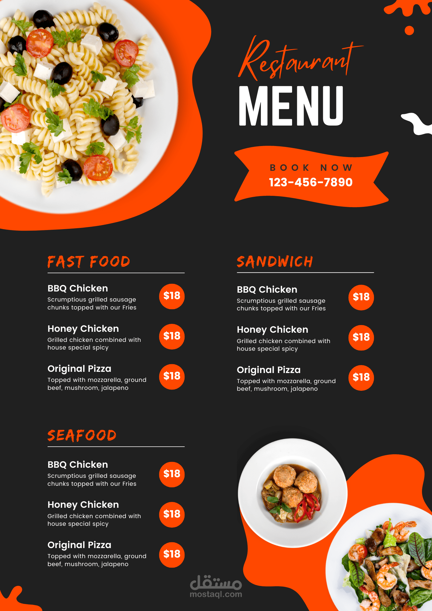 قائمة الاطعمة لمطعم تصميم مينيو menu restaurant