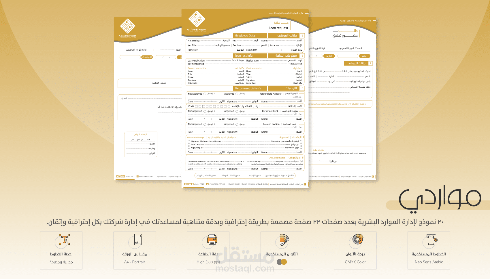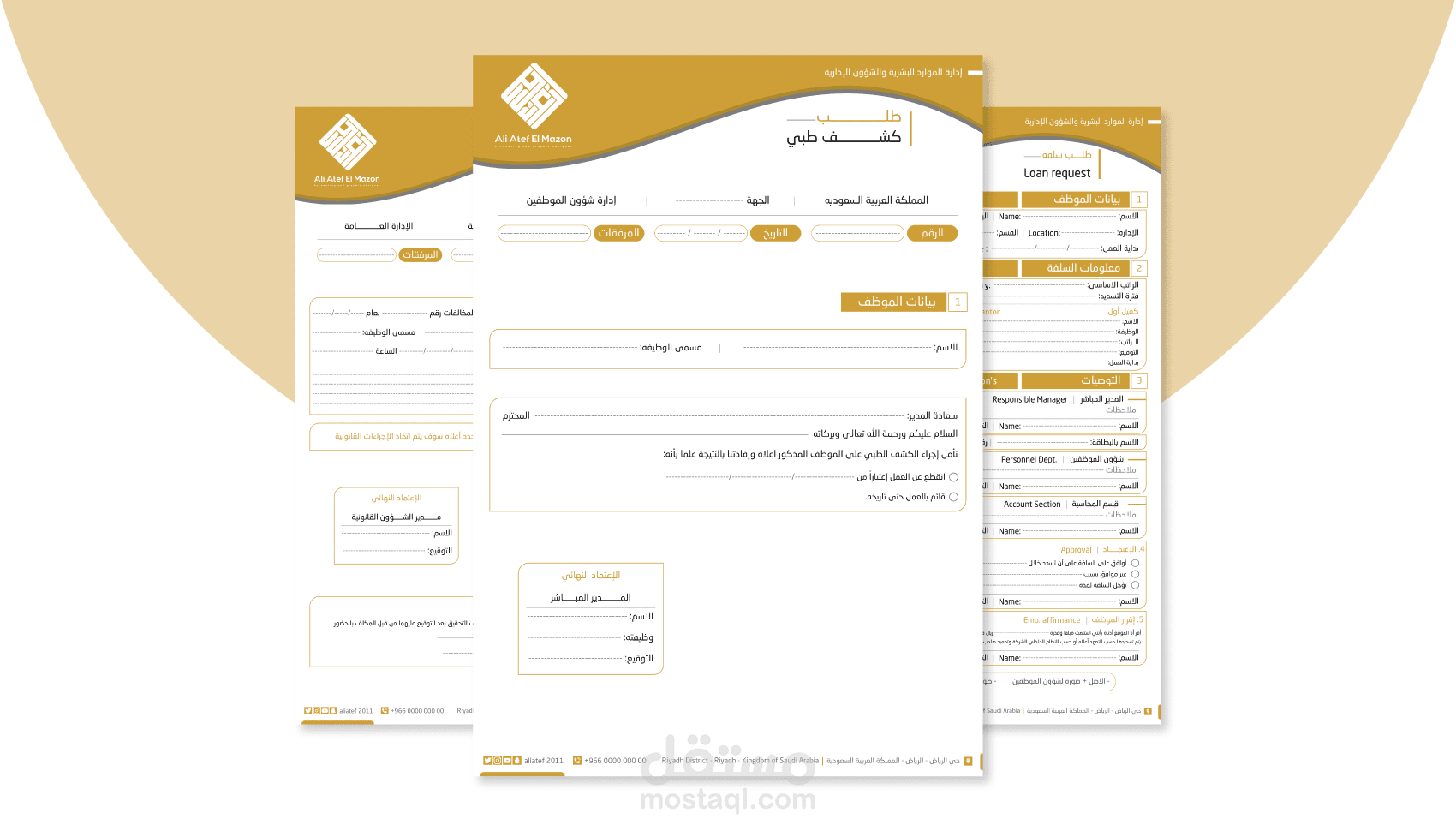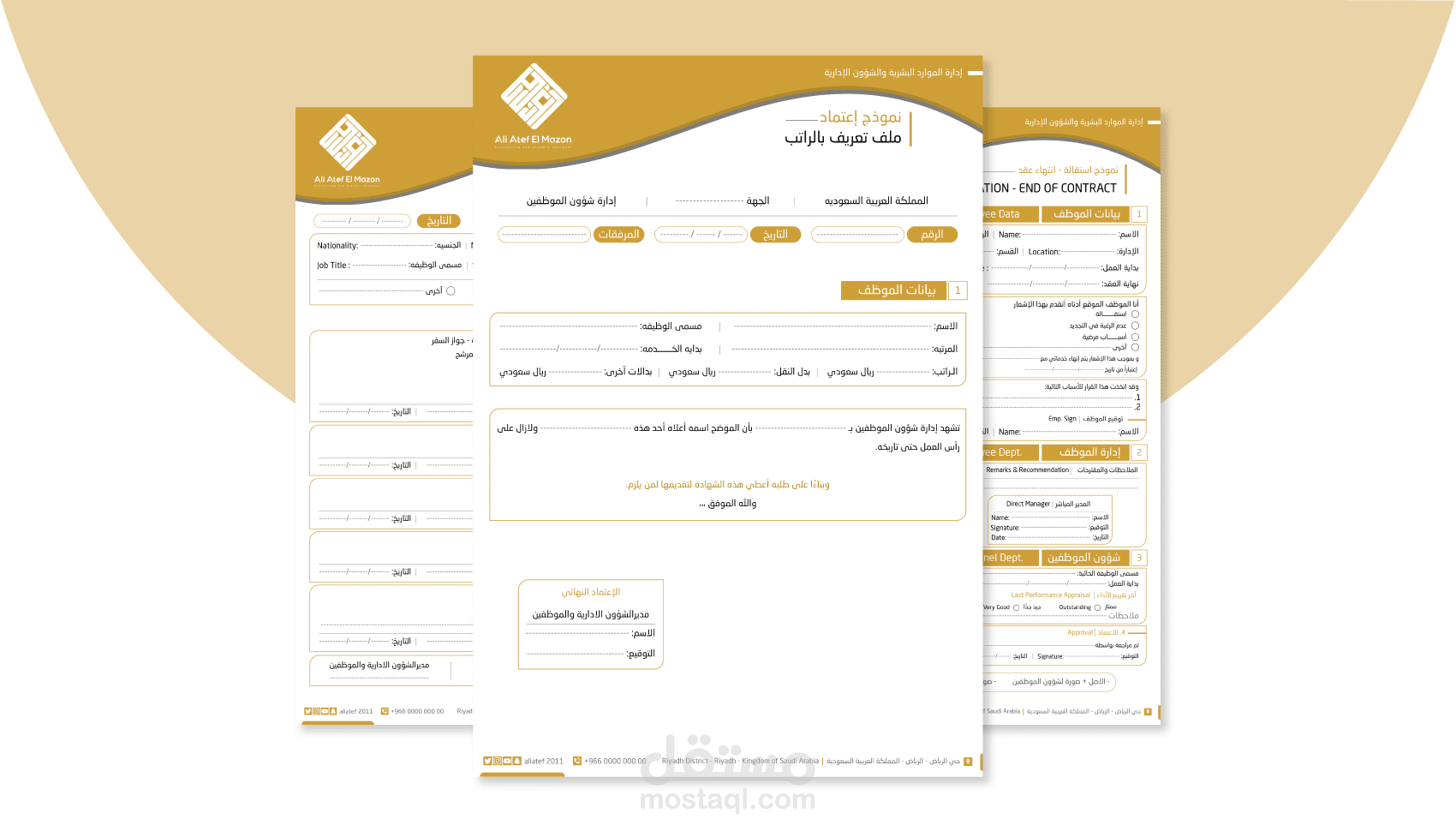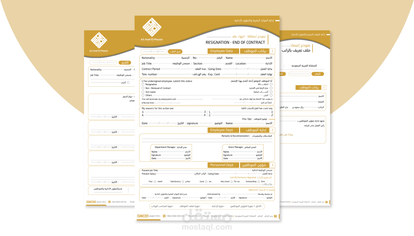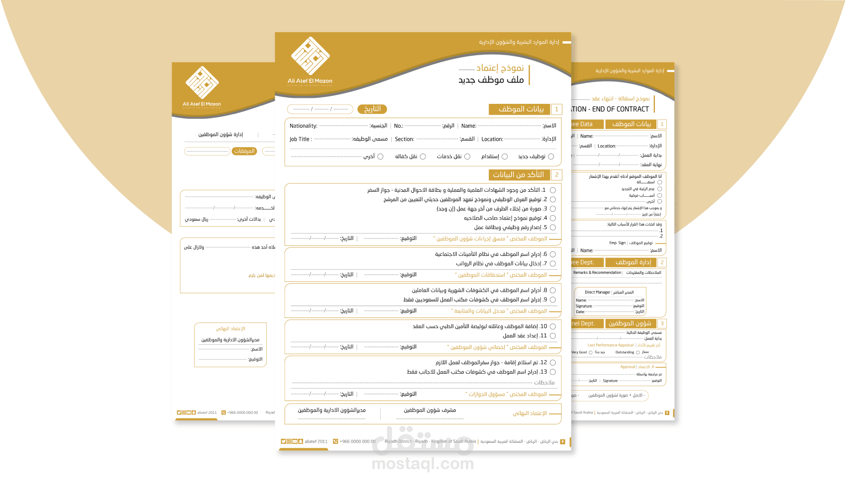 إجراء جزائي، إجراء طـرف، إشعار مباشرة عمل، النموذج الشهري لتقييم أداء الموظفين تحت التجربة، تعهد إجازة سنوية، تقييم أداء الموظفين تحت التجربة، تكليف بمهمة عمل، شهادة خدمة للموظف، طلب إجازة للموظف، طلب تأمين صحي، طلب حضور تحقيق، طلب سلفة، طلب كشف طبي، نموذج استقالة - انتهاء عقد، نموذج إعتماد ملف تعريف بالراتب، نموذج إعتماد ملف موظف جديد، نموذج تعريف بالموظف، نموذج تقييم آداء موظف، نموذج مخالصة نهائية، نموذج نقل موظف.