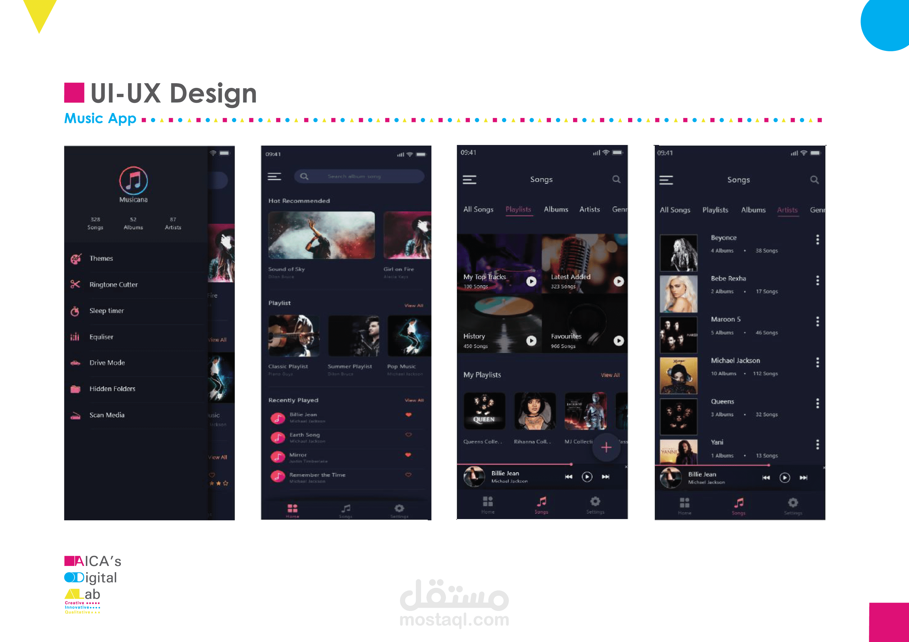 UI-UX Design تم تنفيذ المشاريع في المختبر الرقمي AICA's Digital Lab , بواسطة الفريق المخصص لدينا.