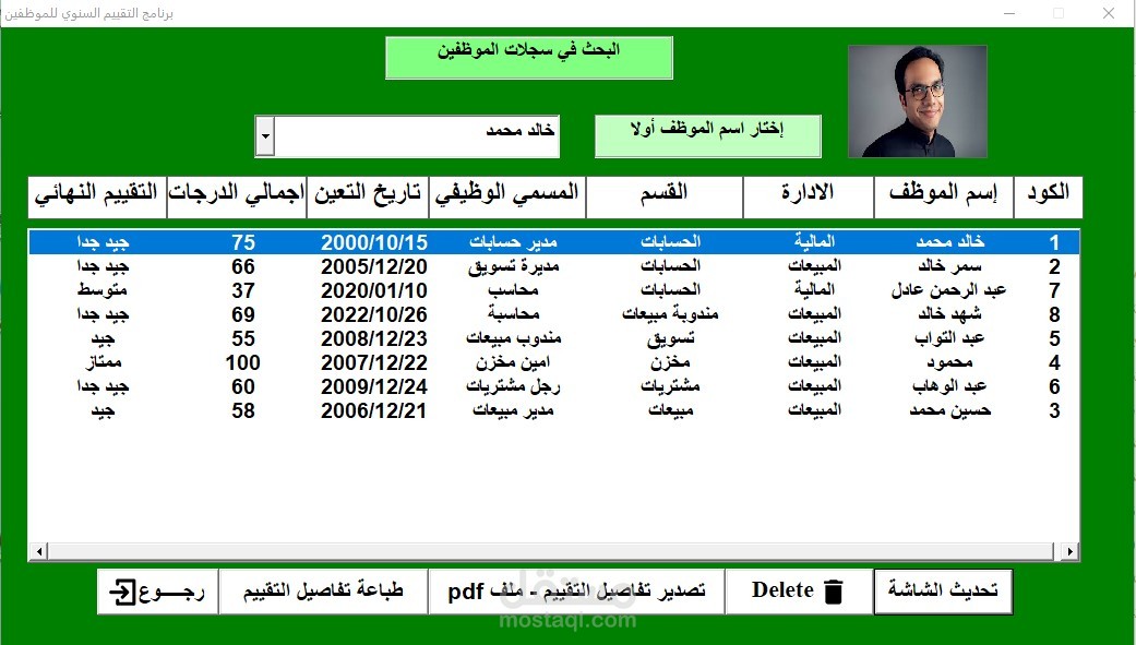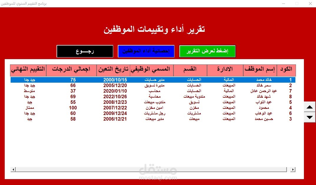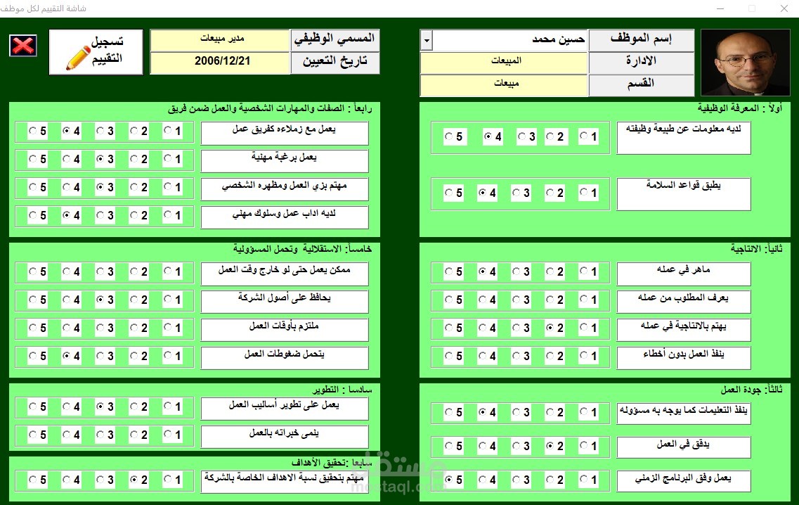 تقييم أداء الموظفين - من خلال برمجة الاكسيل vba