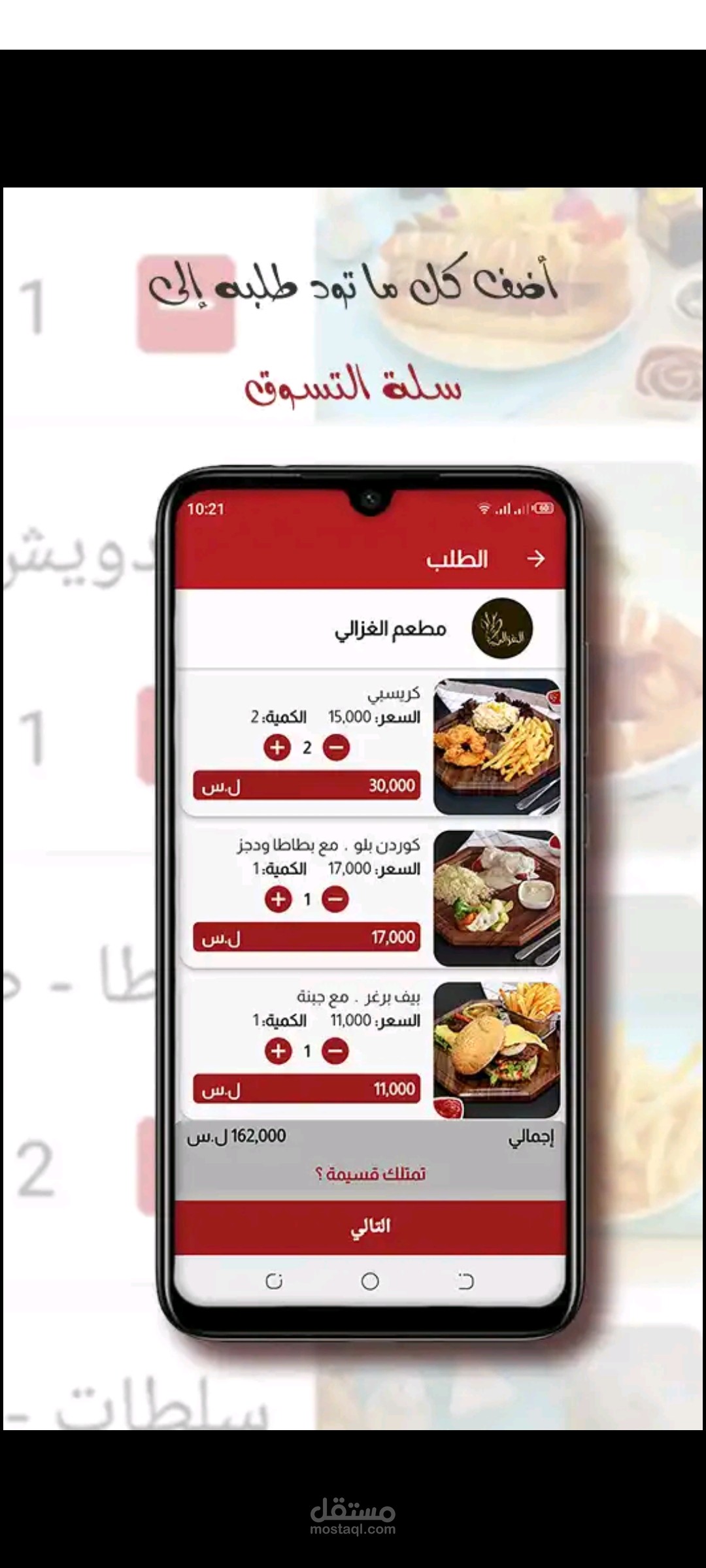 تطبيق موبايل يمنح طريقة سهلة لطلب الطعام من المطاعم ومحلات البقالة ومحلات الحلويات ومحلات الجزارة.