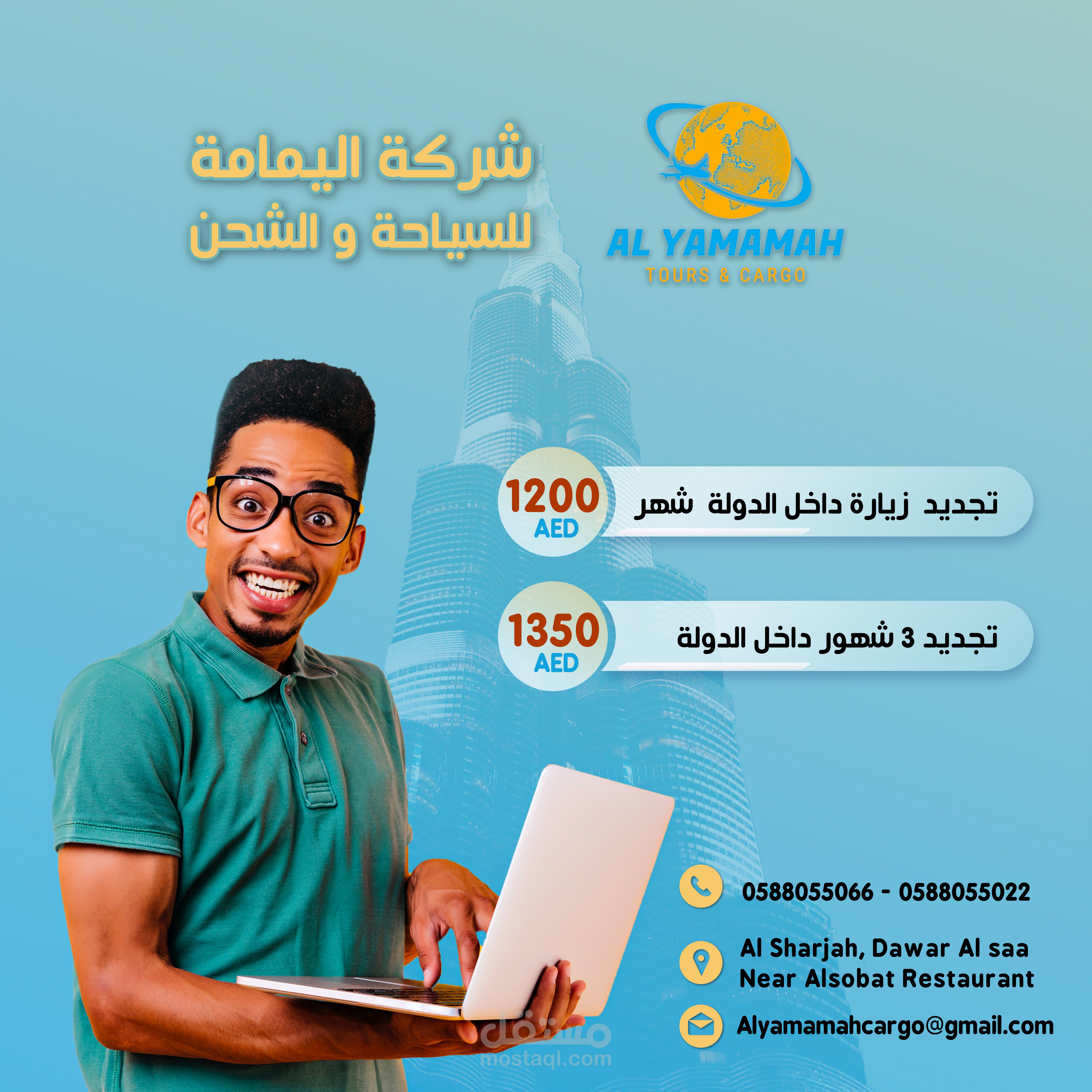 تصميم بوستات اعلانية لعروض وكالة سفر وسياحة بإمارة الشارقة لعمل حملات إعلانية على الإنستقرام.