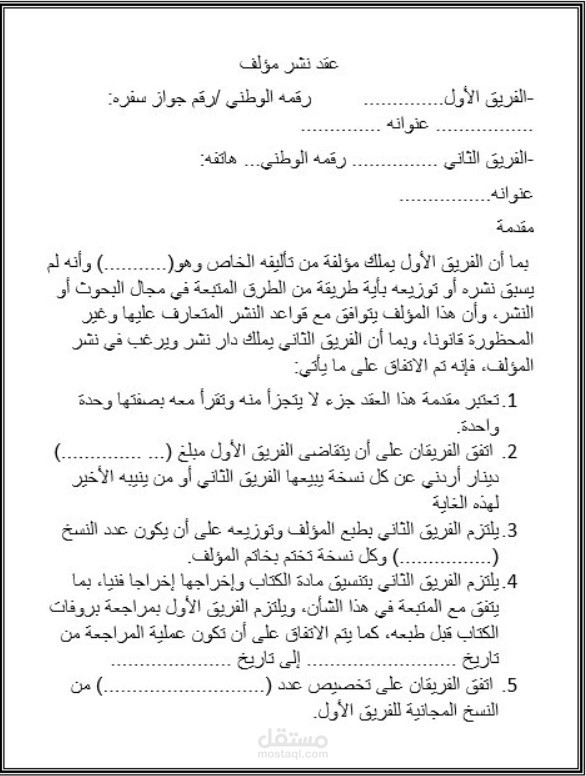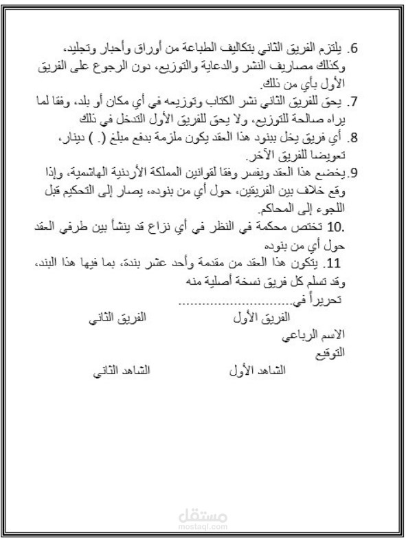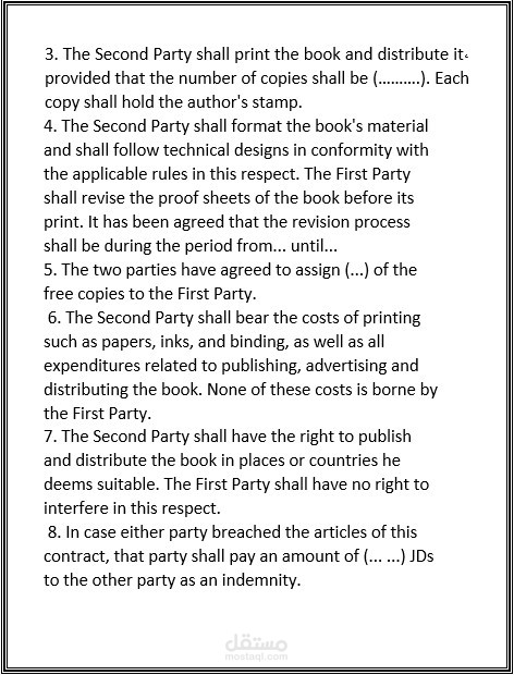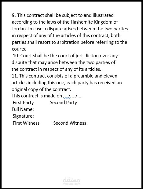 This is my translation of a contract from Arabic to English, and this translation was done creatively, not literally, to convey the meaning in the most eloquent way to the reader's mind