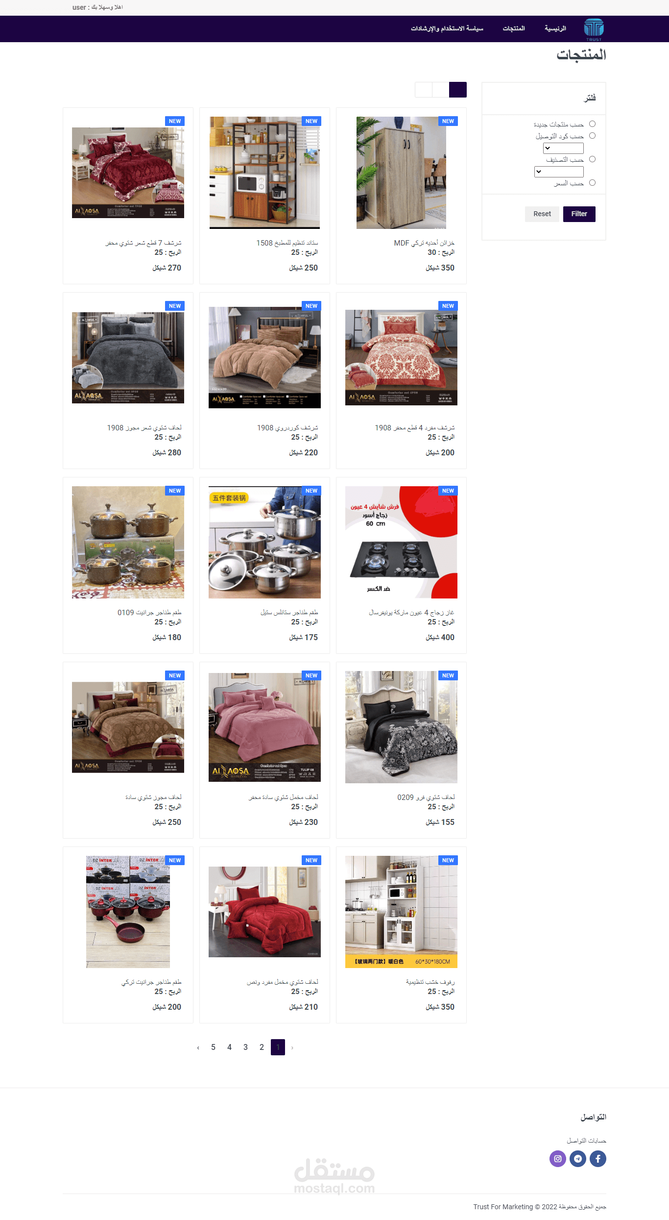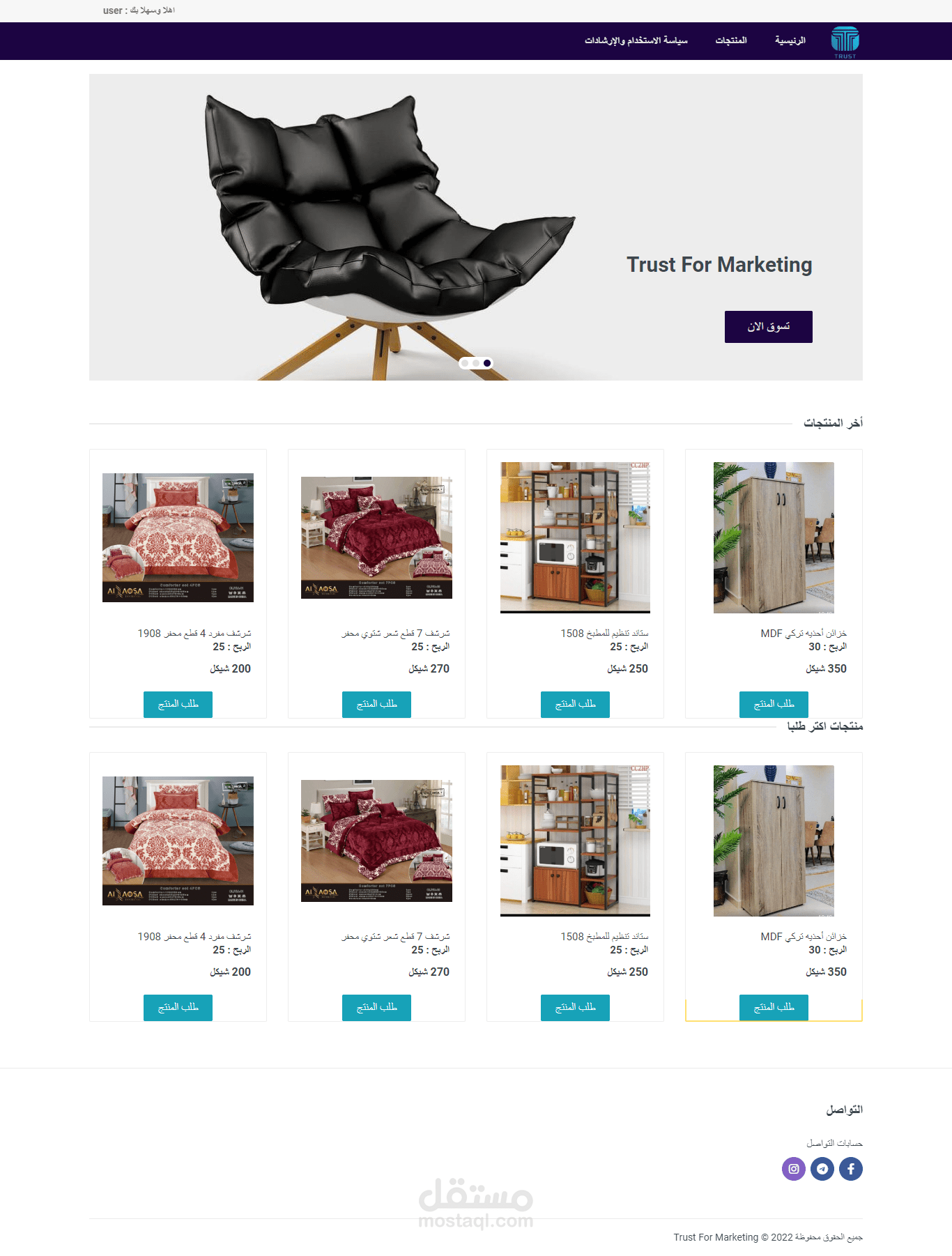 يحتوى موقع على لوحة تحكم يمكن من خلالها اضافات منتجات باكتر من حجم ولون و اسعار لتوصيل