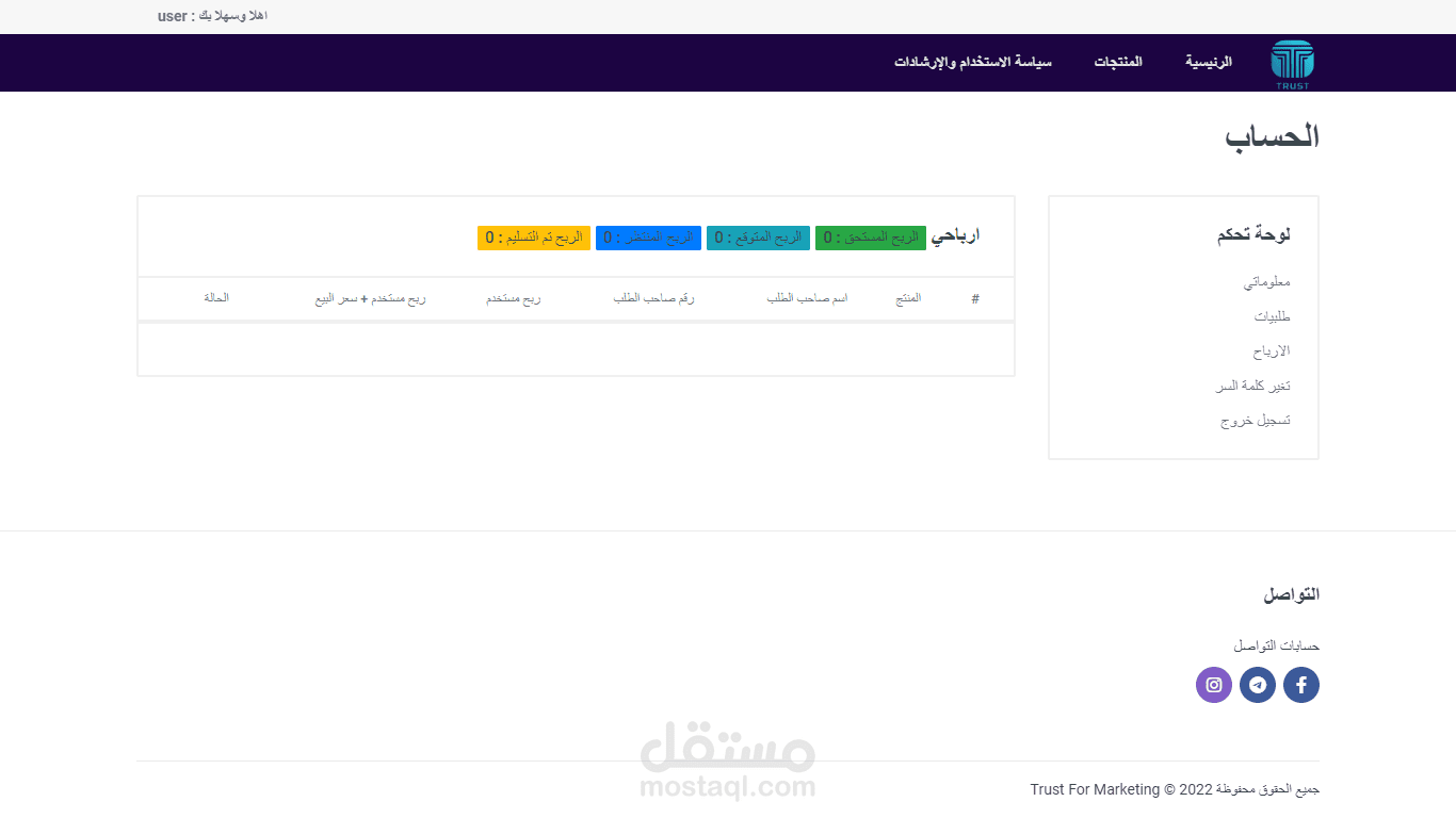 وعرض الأرباح بعد اعتماد الطلب وحساب ارباح كل مستخدم لانو طلب يتم من خلال مسوق بعد كل طلب يسجل ربح لمسوق والادمن
