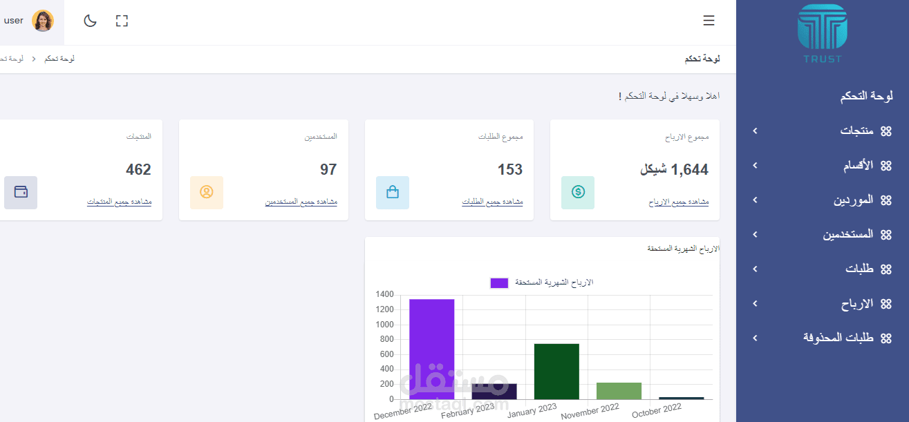 لوحة تحكم تحتوى على صفحات لعرض واضافة منتجات